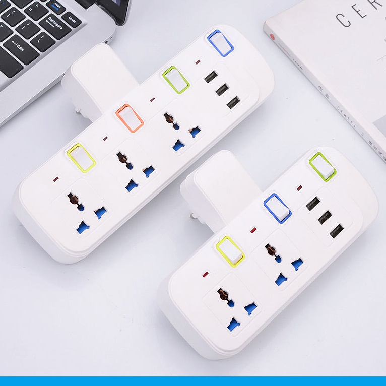 3USB + 3 Multi Socket T-ADAPORT 2.4A USB Universal Extension Plug Neon Indicator Multi Universal Adapter
