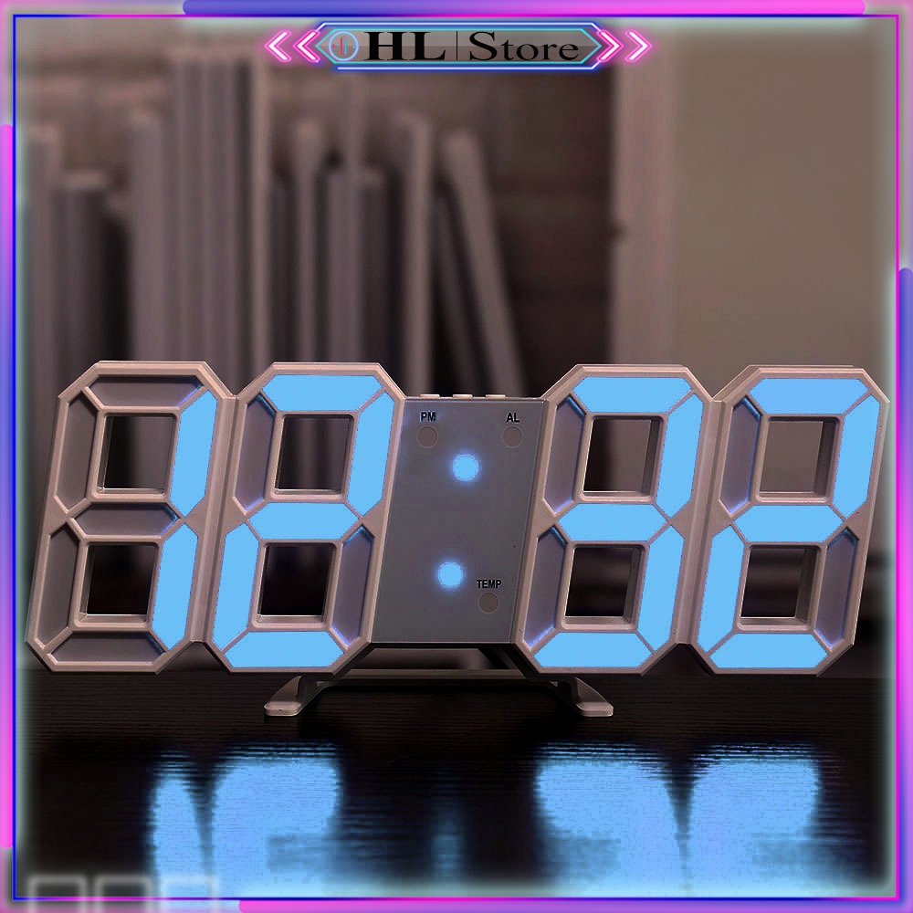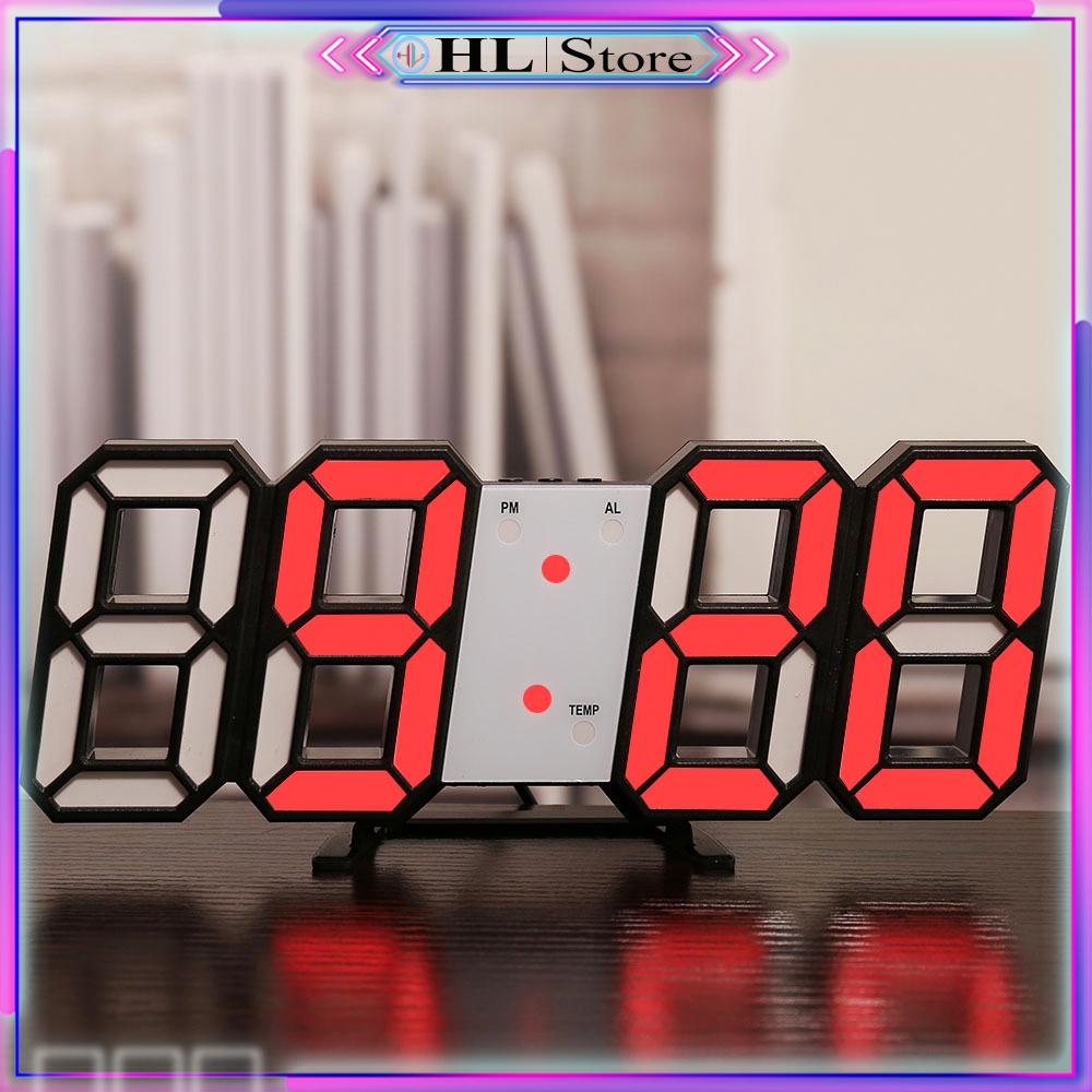 3D LED desk clock - Youthful design - Displays time, date, temperature, alarm
