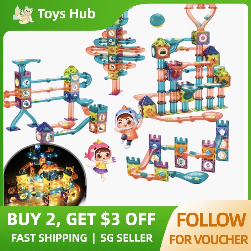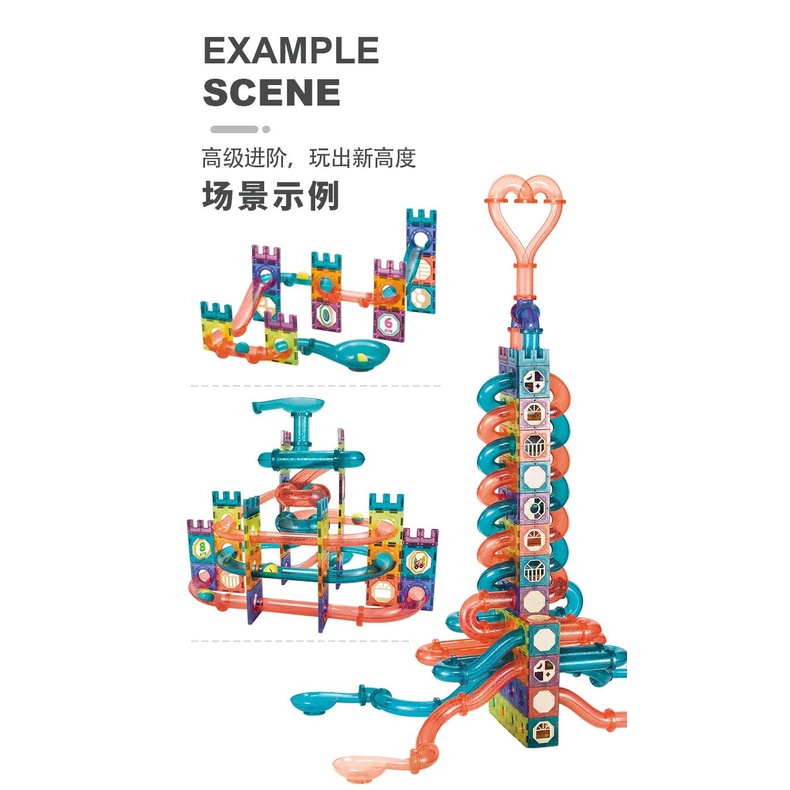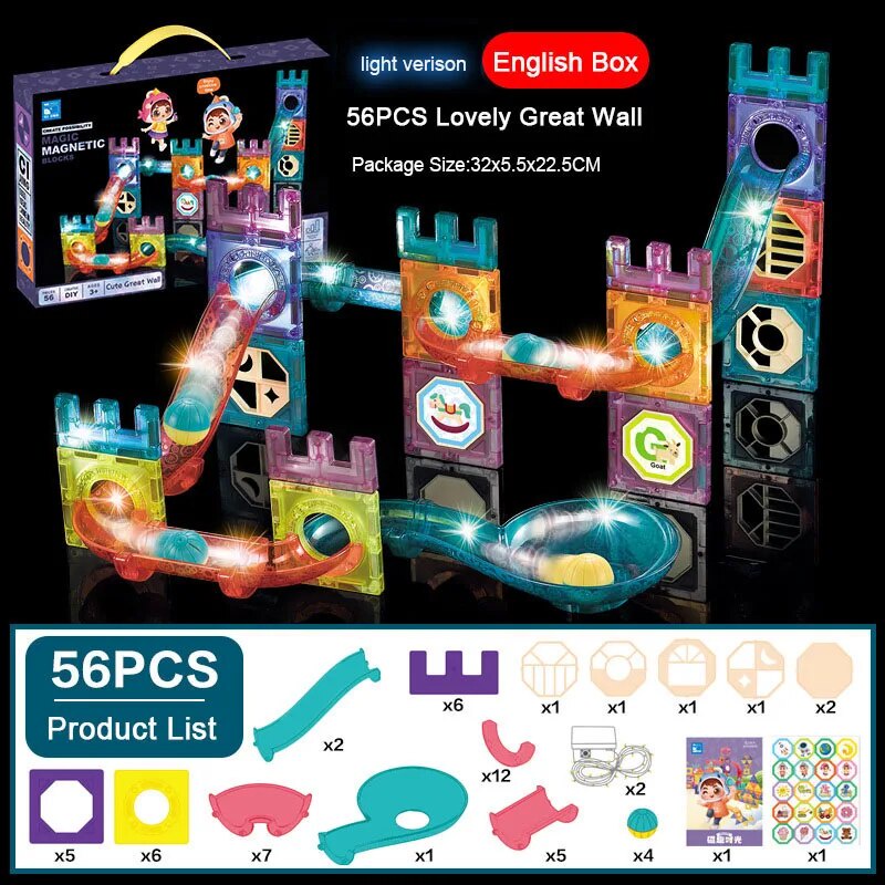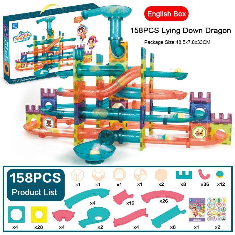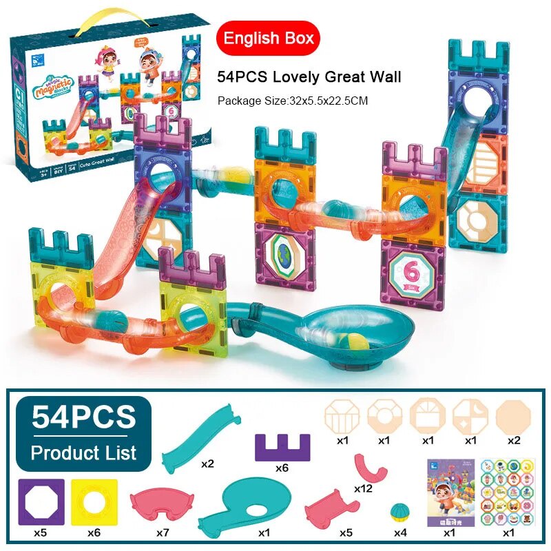 3d Magnetic Tiles Building Blocks Set with Ball Track, Magnet Tiles for Kids, Educational STEM Toys