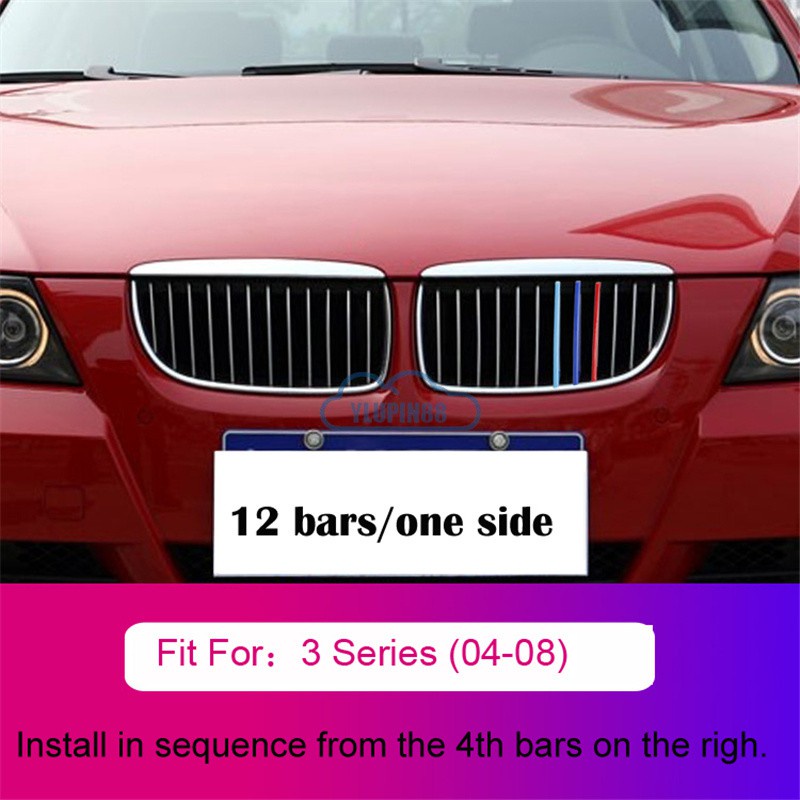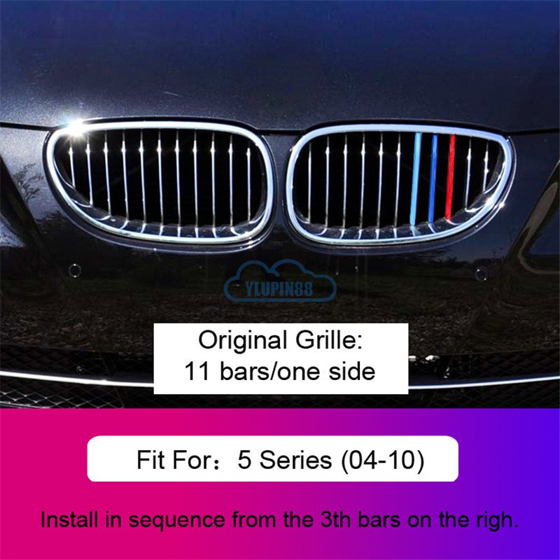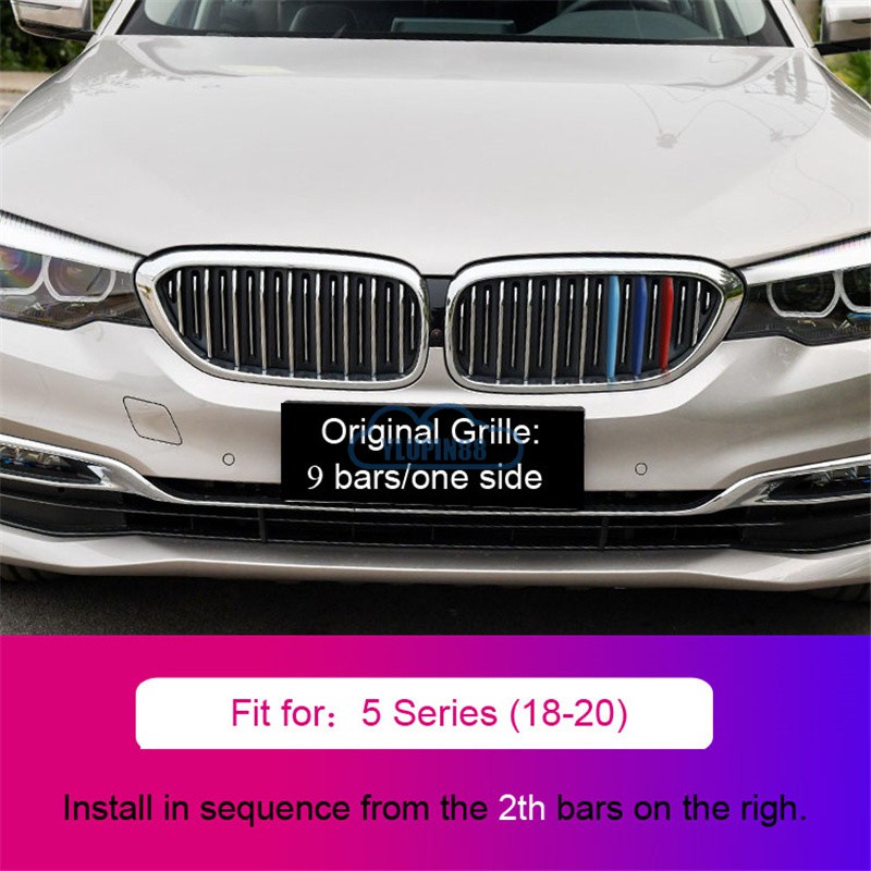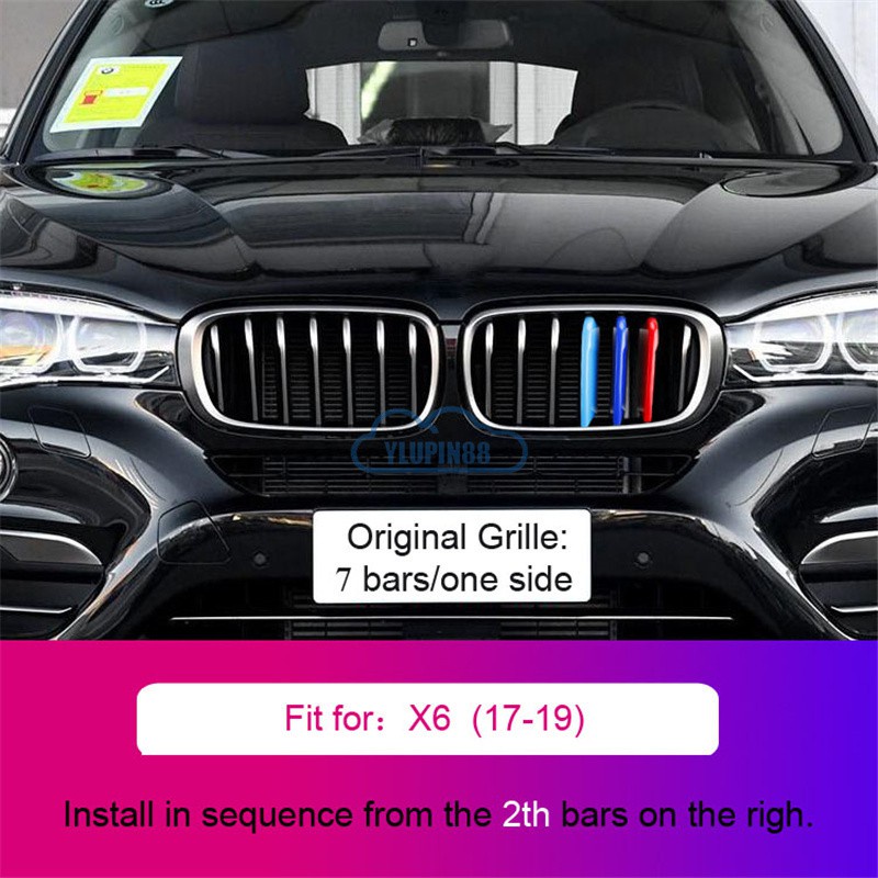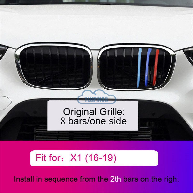 3pcs BMW M Sport Sticker Car Kidney Grill Clip Cover 3 Color Front Grill Covers Clips Stripes Trim Car Accessories Modified For BMW 1 Series 2 Series 3 Series 4 Series 5 Series 6 Series X1 X2 X3 X4 X5 X6 X7 Z4