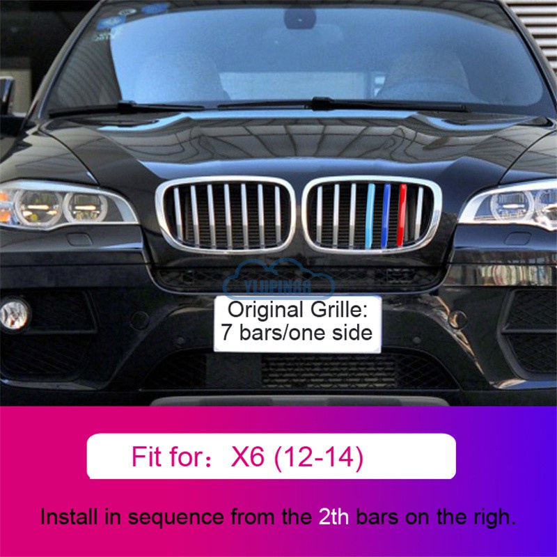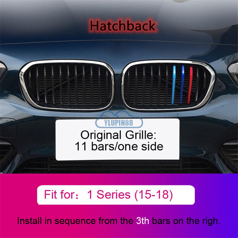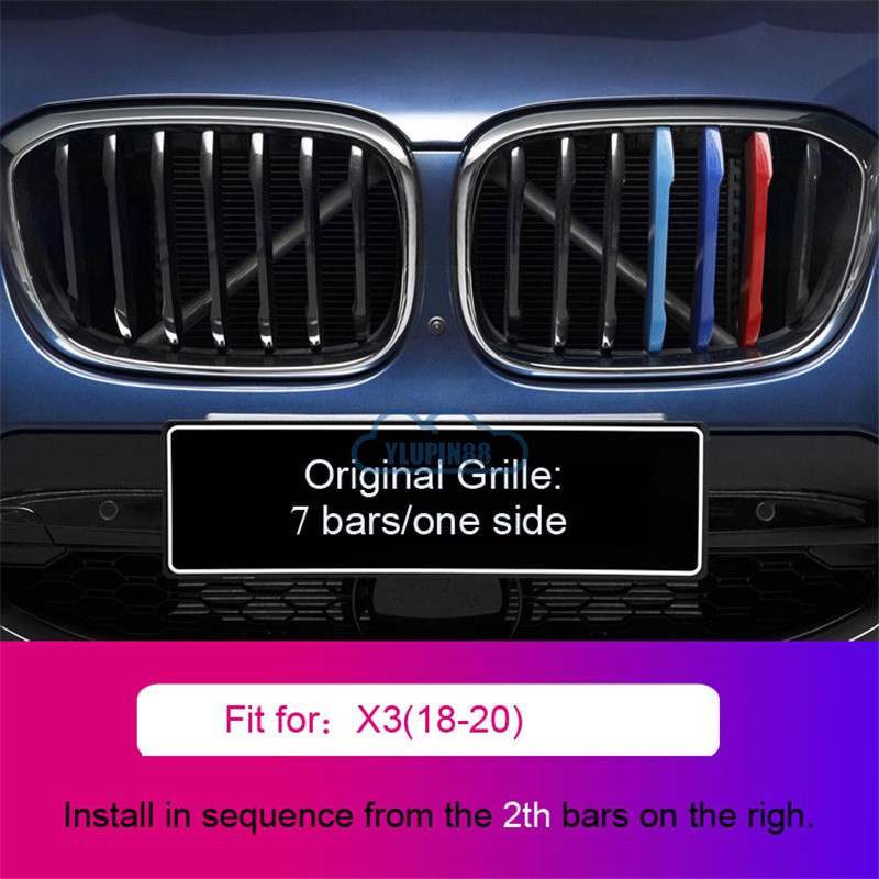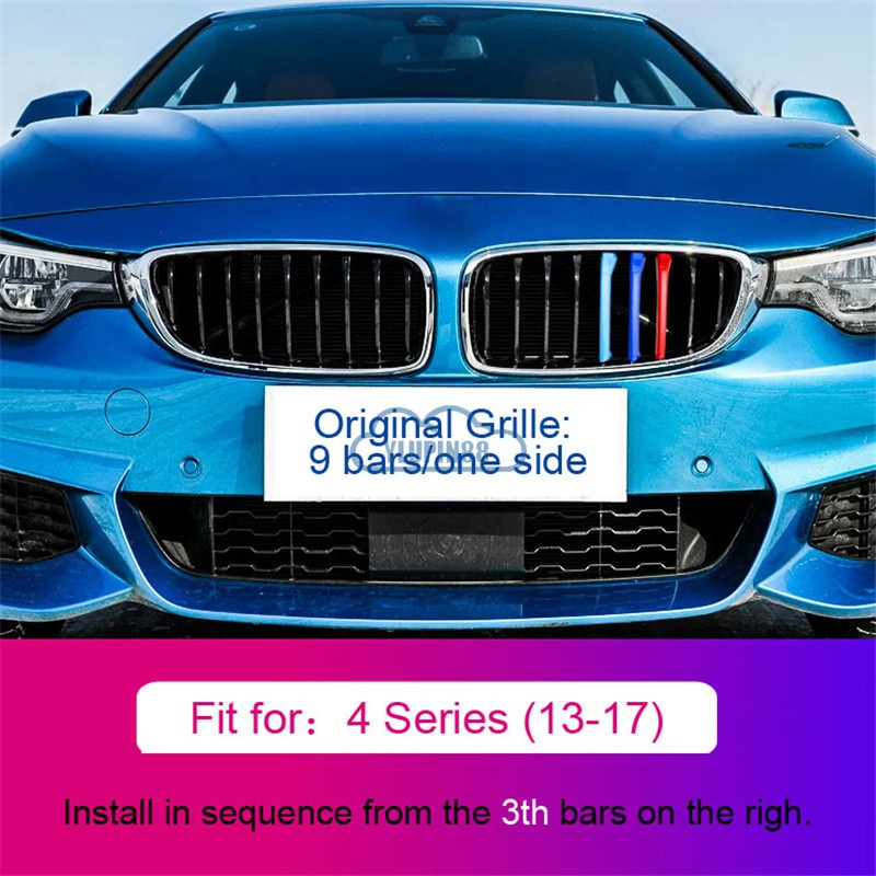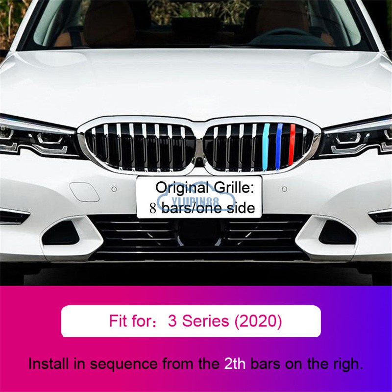 3pcs BMW M Sport Sticker Car Kidney Grill Clip Cover 3 Color Front Grill Covers Clips Stripes Trim Car Accessories Modified For BMW 1 Series 2 Series 3 Series 4 Series 5 Series 6 Series X1 X2 X3 X4 X5 X6 X7 Z4