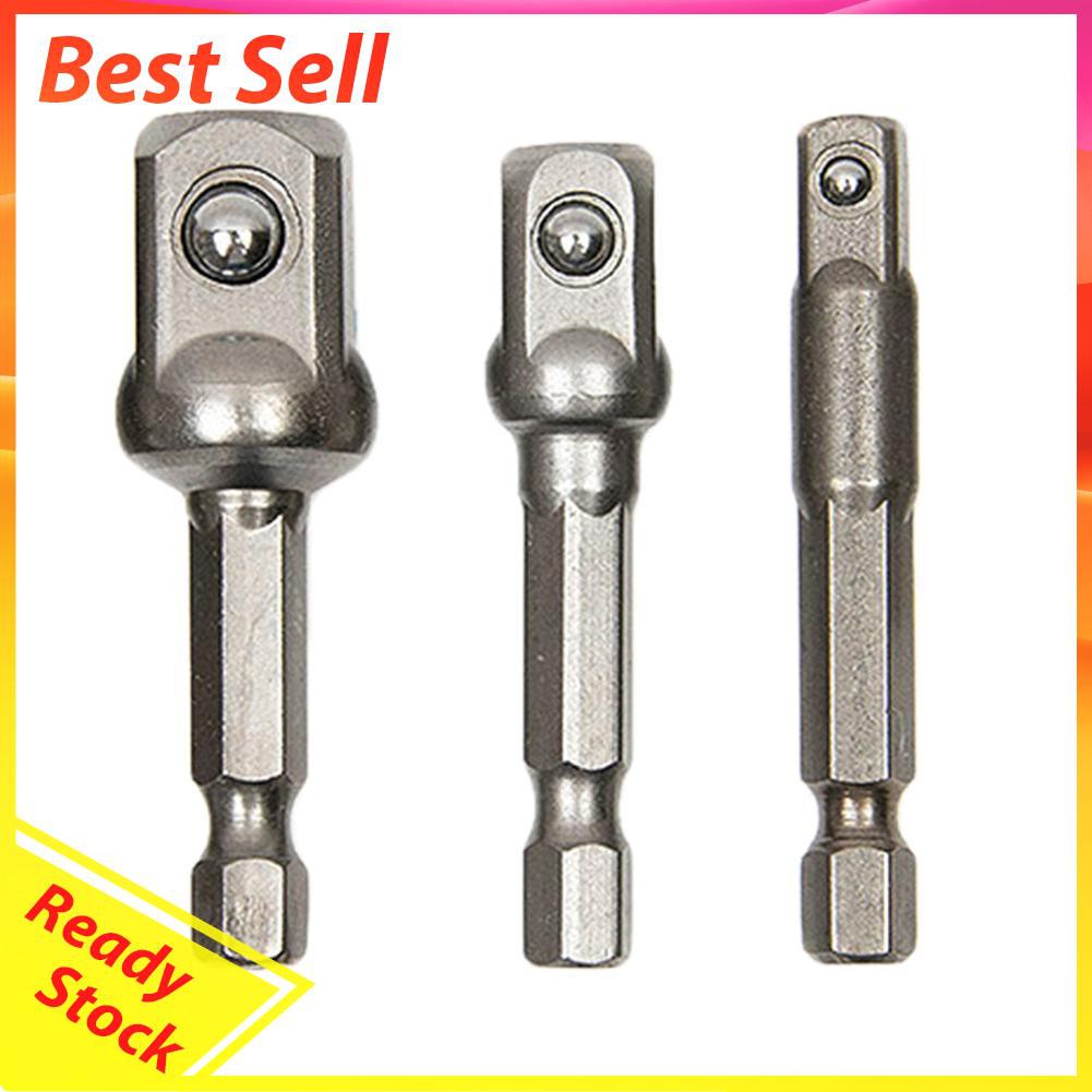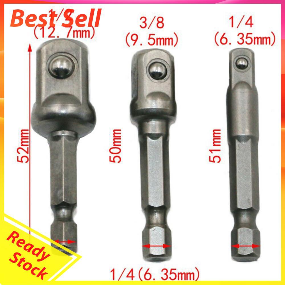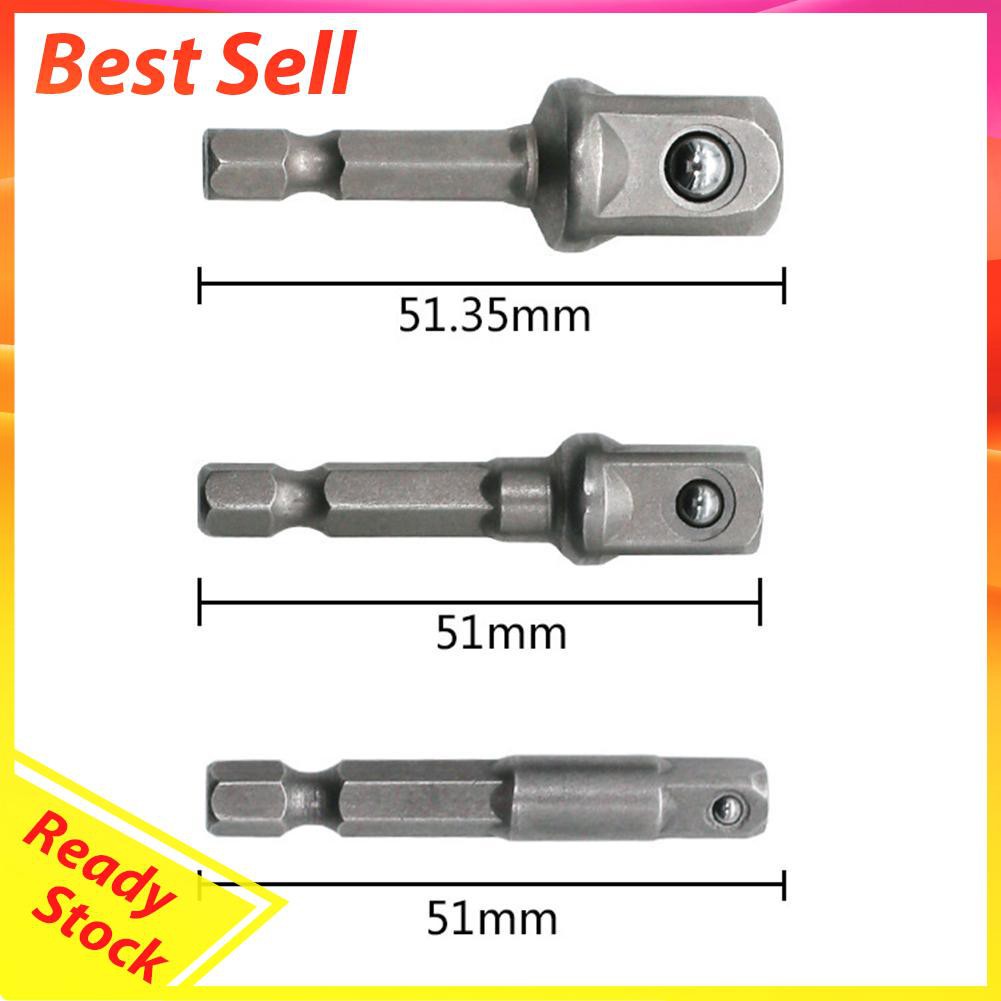 3pcs Chrome Vanadium Steel Socket Adapter Extension Drill Bit Hex Shank to 1/4" 3/8" 1/2" Hex Bit