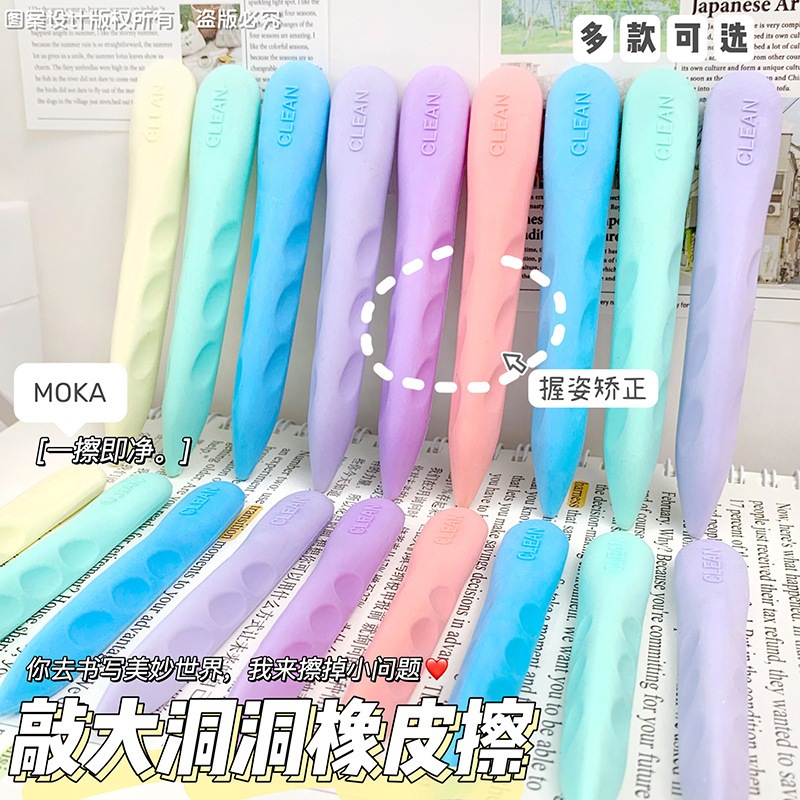 3pcs/set Oversized Eraser Pen Shaped Eraser Macaron Color Eraser Creative Double-sided Eraser Rubber Student Supplies