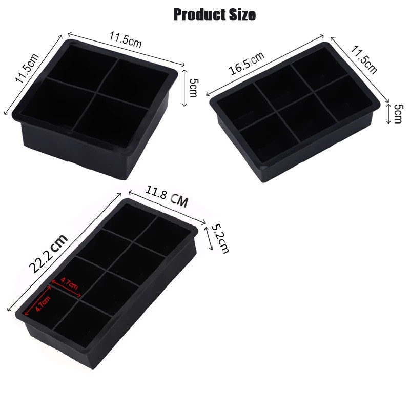 4/6/8 Grid Big Ice Tray Mold/Food Silicone Ice Cube Square Tray Mold/Reusable DIY Ice Maker Mold/Kitchen Supplies