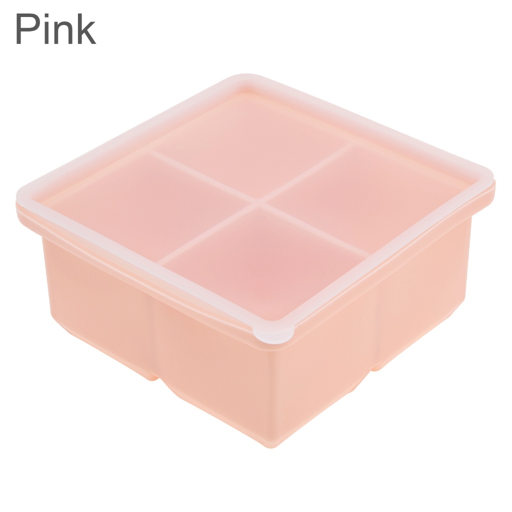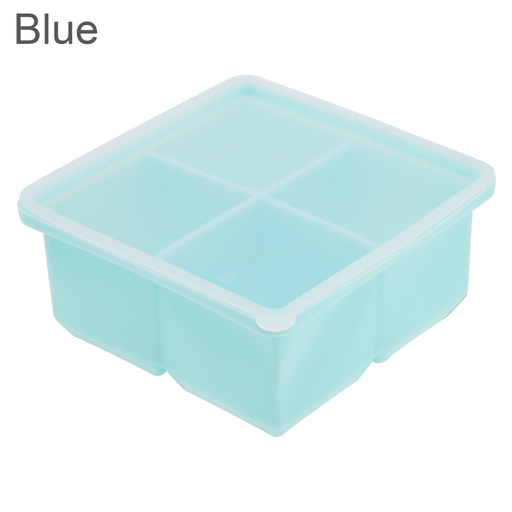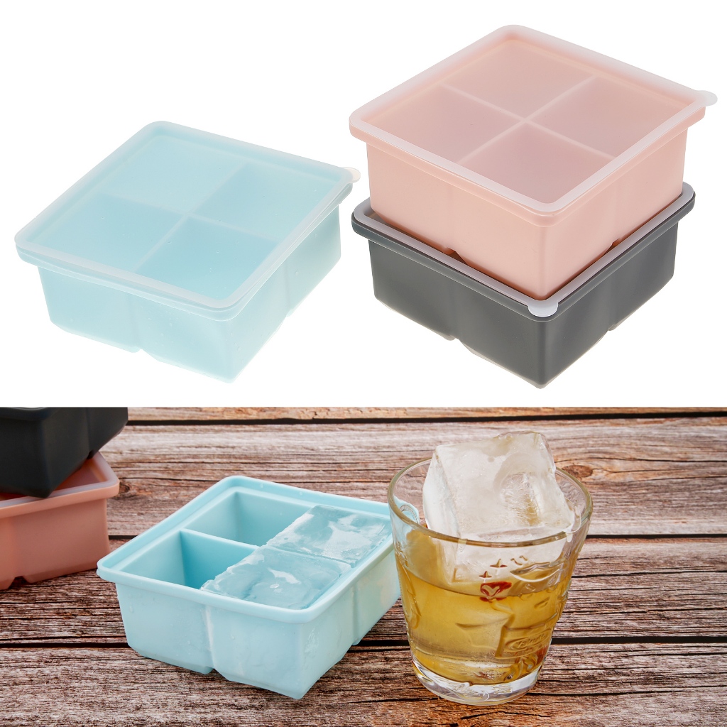 4 Grid Big Cube Jumbo Large Silicone Ice Cube with Sealing Cover Square Tray Mould Ice Cube Maker Kitchen Accessories