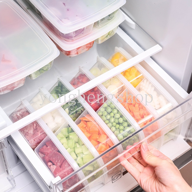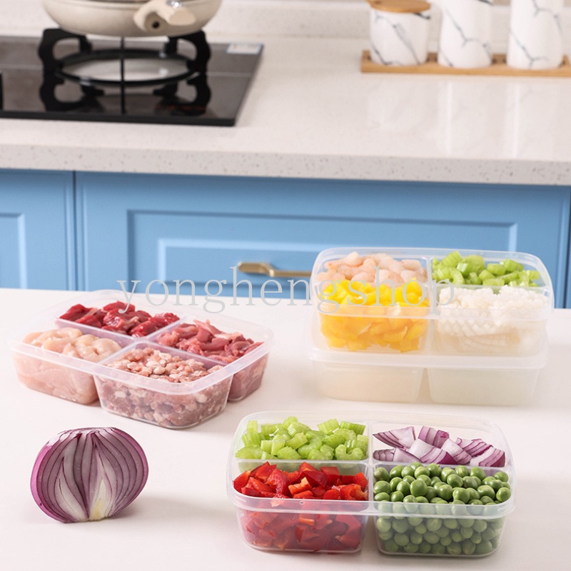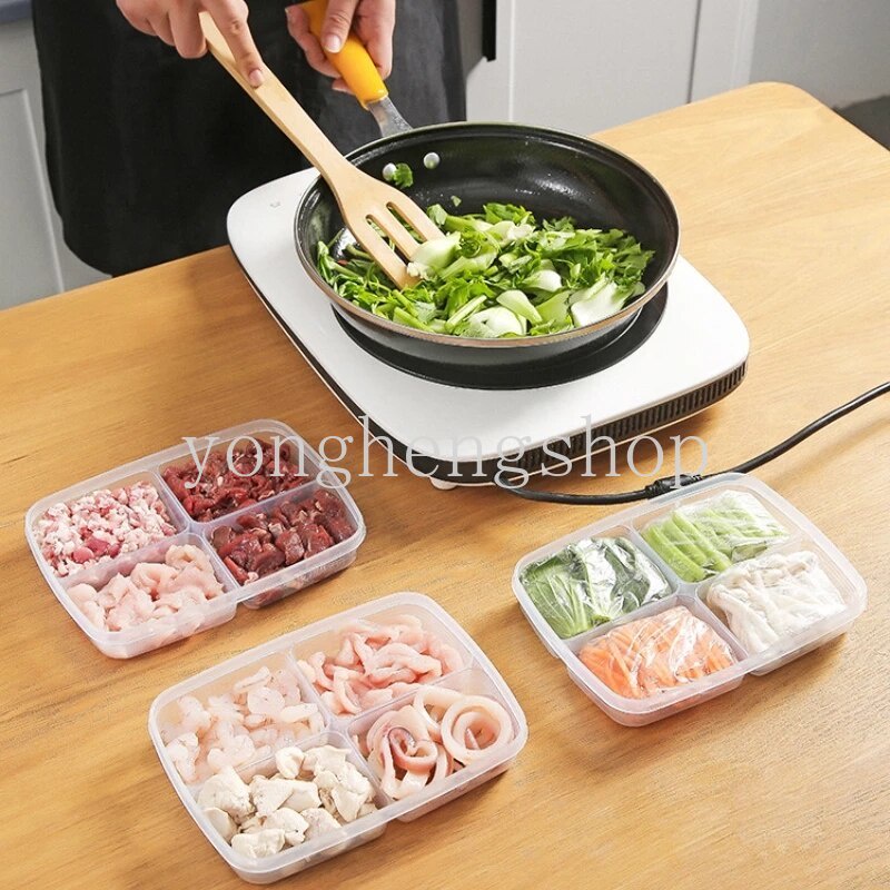 4 Grids Food Storage Box Freezer Refrigerator Fruit Food Fresh-keeping Boxes Sub-Packed Meat Crisper Onion Ginger Vegetables Side Dishes Container Kitchen Food Organizers