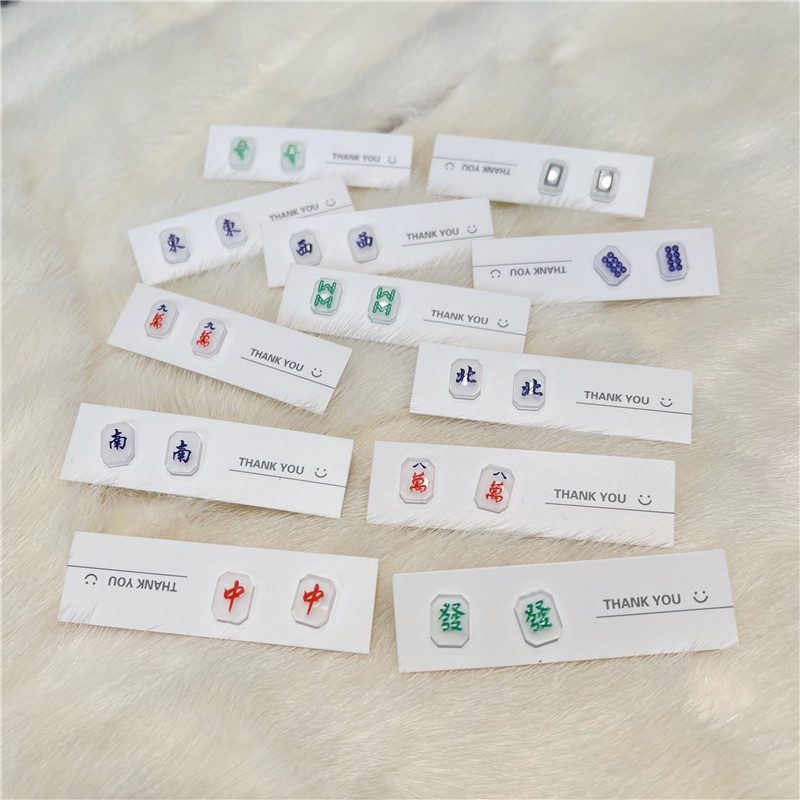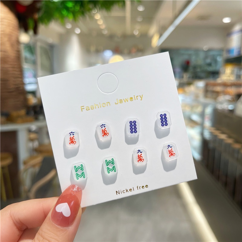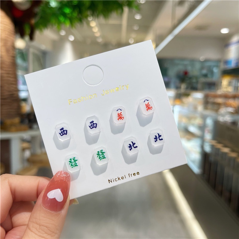 4 Pairs/Set Cute Simple Mahjong Small Earrings Set Fashion Earrings for Women