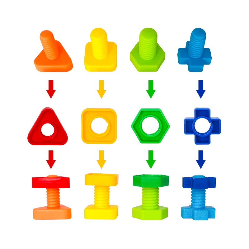 4 Set Children Screw Building Blocks Toys Plastic Insert Blocks Nut Shape Model Montessori Educational Toy