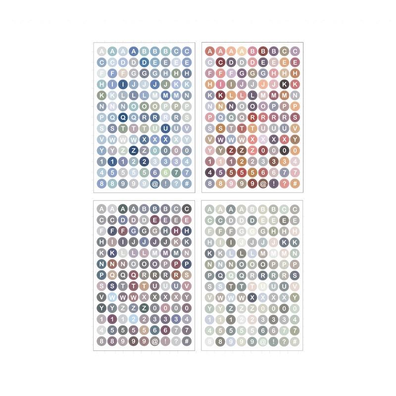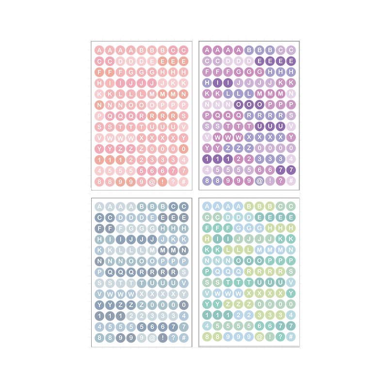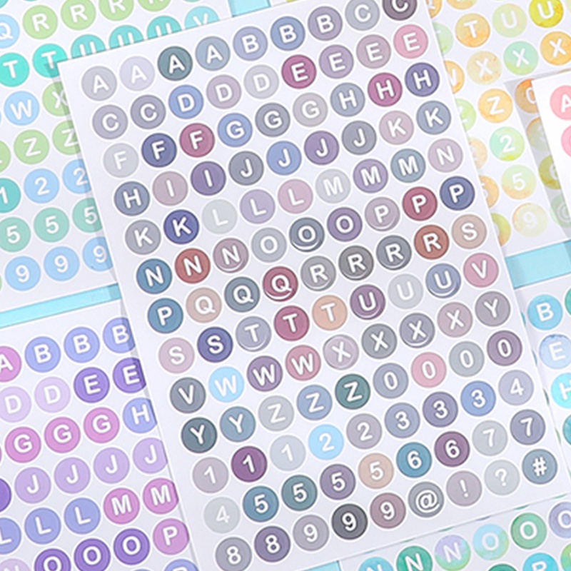 4 Sheets Multi Color English Letters and Numbers Series Dot Deco Stickers Tearable DIY Round Stickers