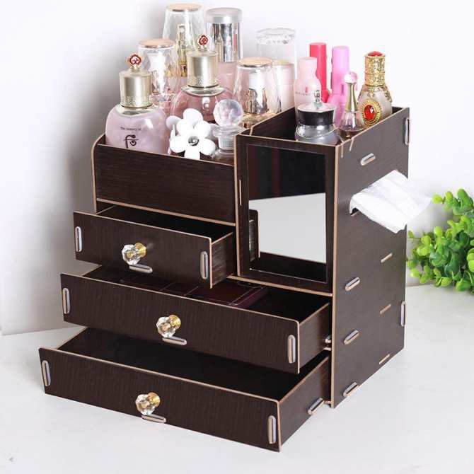 4-tier wooden cosmetic shelf with large handle (shelf with mirror)