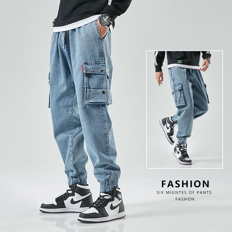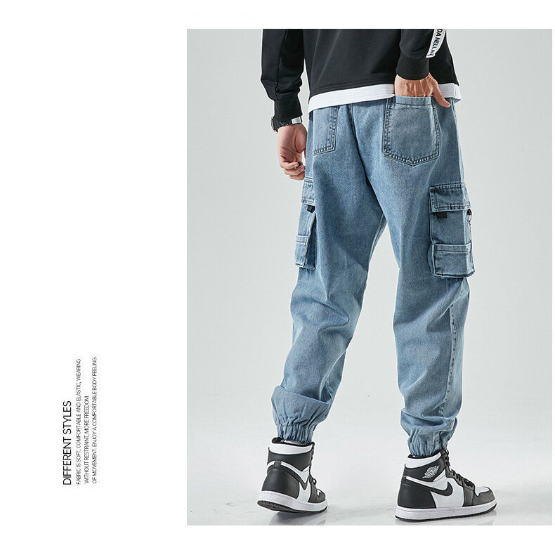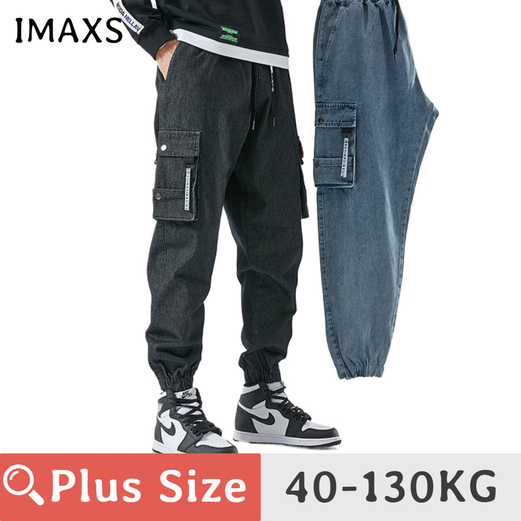 40-130KG PLUS SIZE Hip Hop Cargo Jeans Pants Men Casual Harem Joggers Trousers Streetwear Denim Jeans