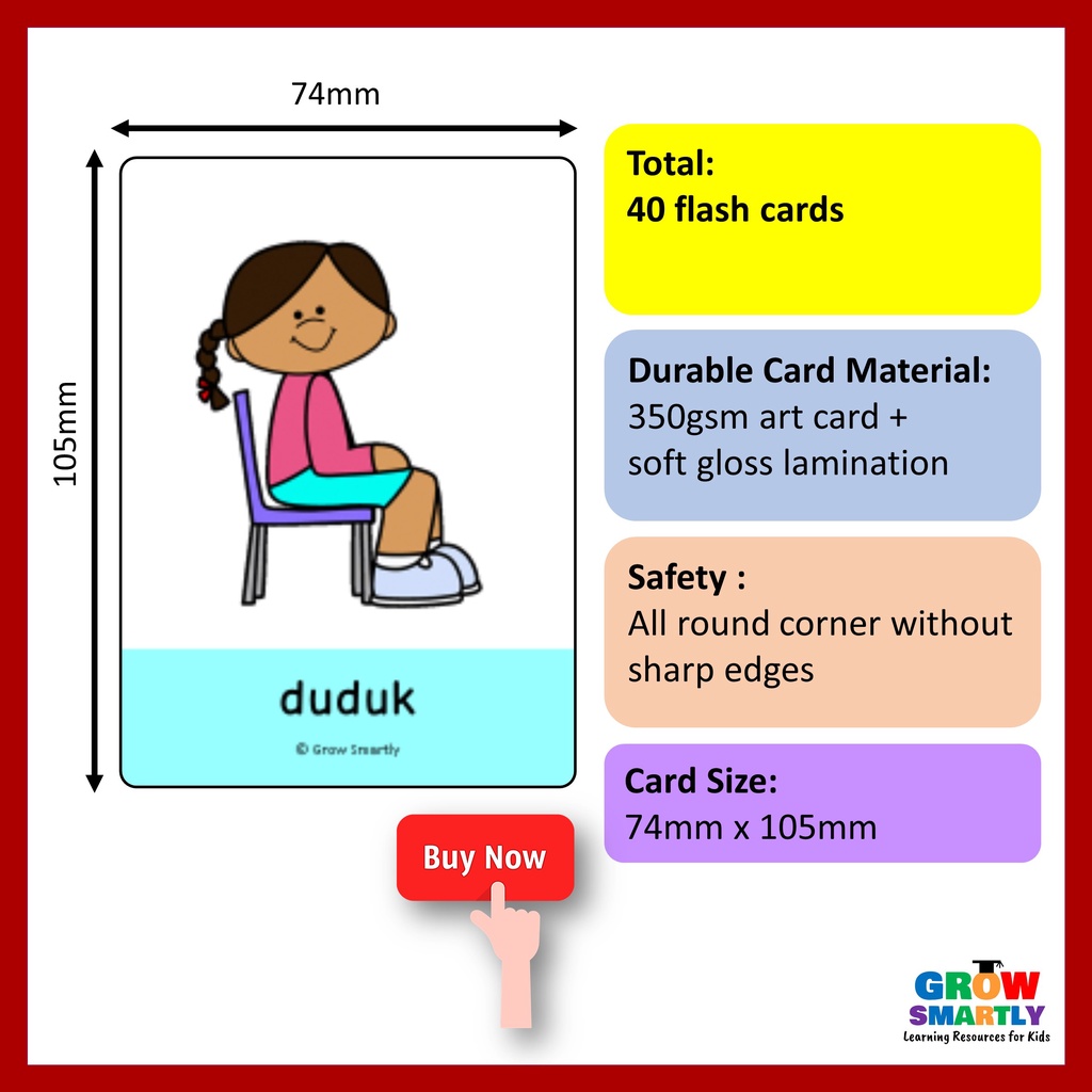 Kata Kerja Kad Imbas 40pcs Bahasa Flash Cards for Kids Malay Language Flash Card Learning Resources