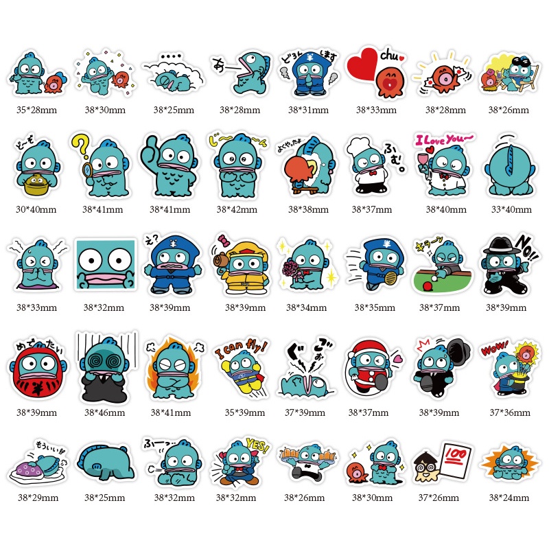 40 pcs Cute Hangyodon Sanrio Cartoon Waterproof Scrapbook Stickers
