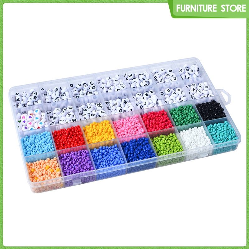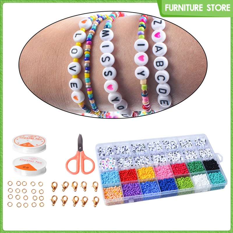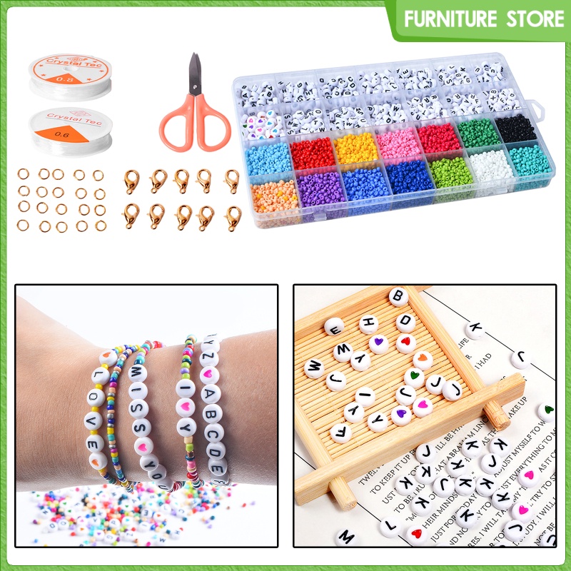 4000pcs Bracelet Beads for Jewelry Making Bead Craft Set, 3mm Glass Seed Heart Beads DIY Art and Craft with Elastic String Cord