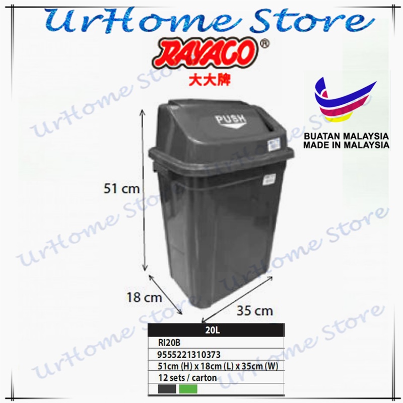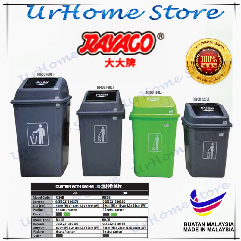 40L / 60L Swing Top Garbage Bin With Swing Lid / Dustbin / Waste Paper Bin / Trash Bin / Tong Sampah 30L / 20L