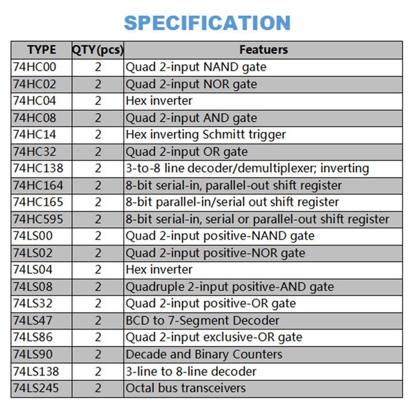 40Pcs(20Pcs 74HCxx+20Pcs 74LSxx) Series Logic IC Assortment Kit Digital Integrated Chip