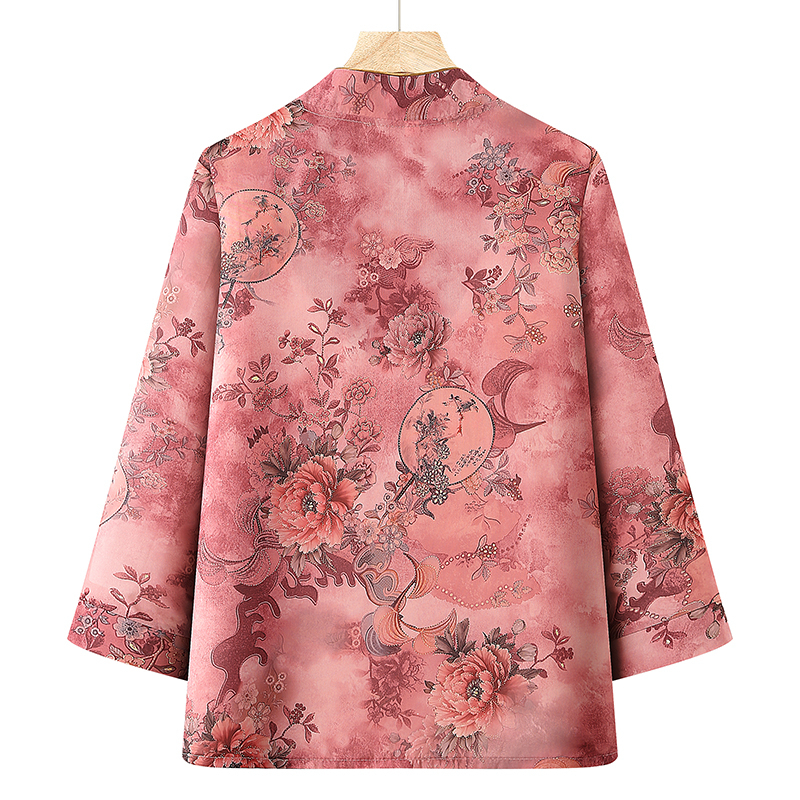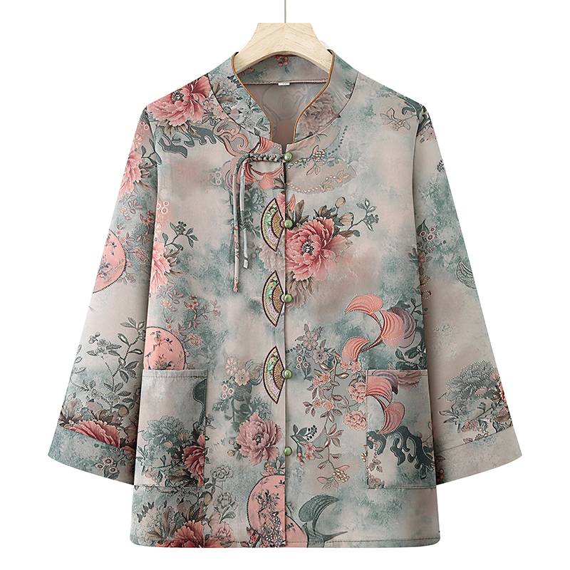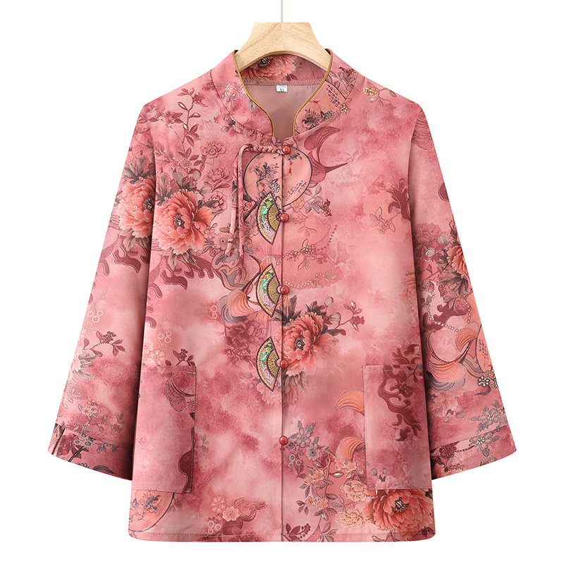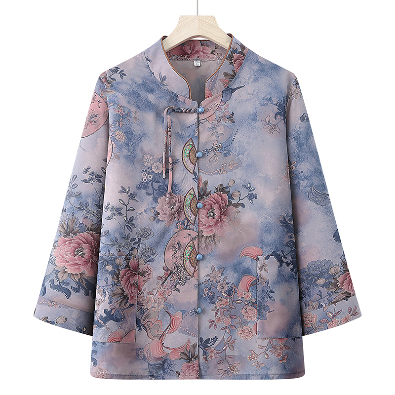 Blouse Women Elderly Clothes Grandma Shirt Long Sleeve Stand Collar Round Neck Loose Casual Plus Size Top Flower Red Pink Blue Purple
