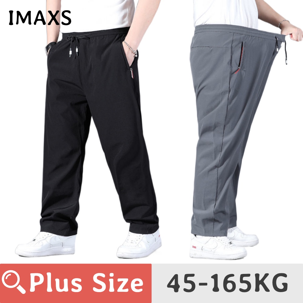 45-165KG PLUS SIZE Men Loose Straight Fit Sports Big Casual Oversize Trousers Thin Stretch Quick Dry Pants