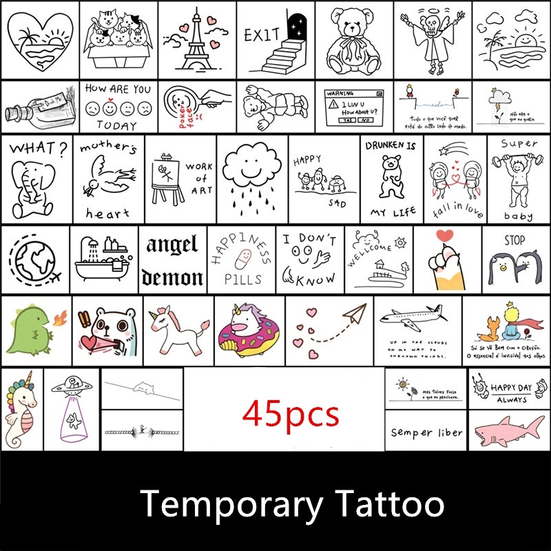 45 Sheets Simple Small Fresh Cute English Tattoo Stickers Waterproof Wind Durable Simulation Ins Wind Net Red