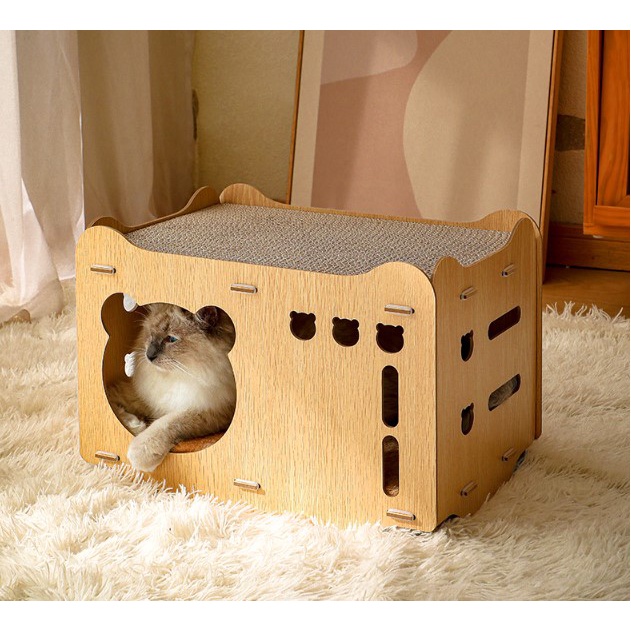46cm Cat Wooden House Tahan Lama Wood Box Lego Cat House Wooden House Wood Cage Rumah Kucing Kotak