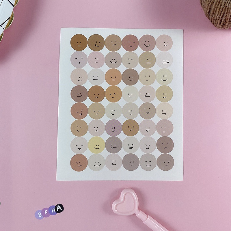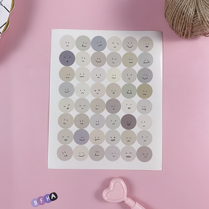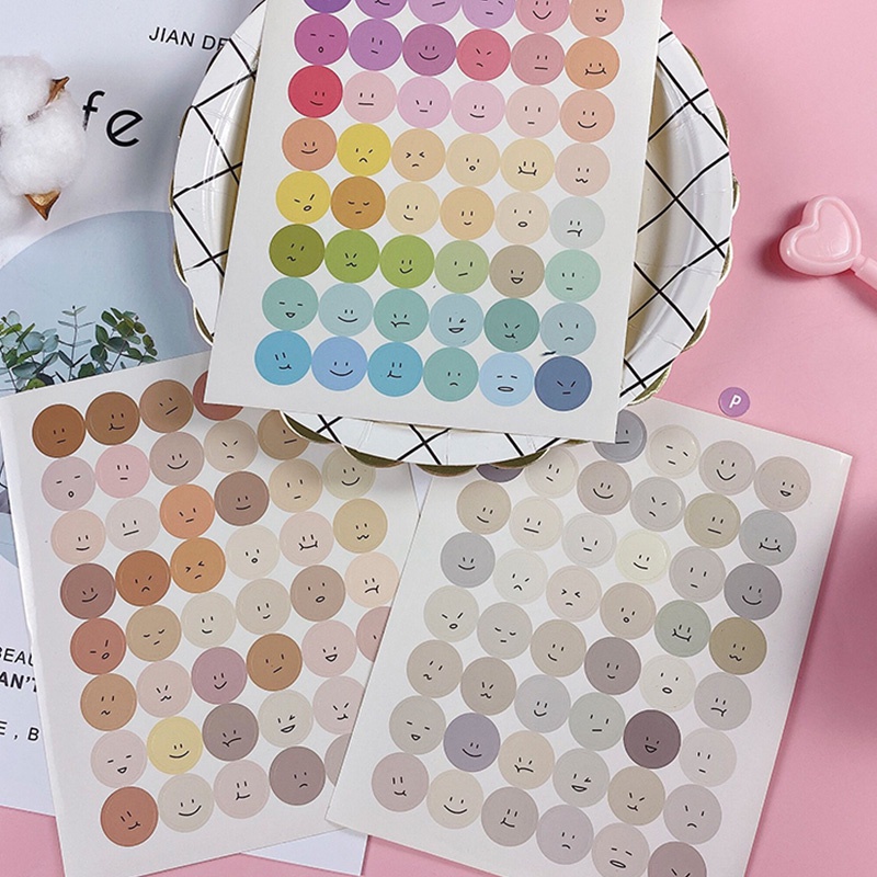 48 Pcs Cute Morandi Expression Round Dot Stickers Creative Colorful DIY Sealing Stickers