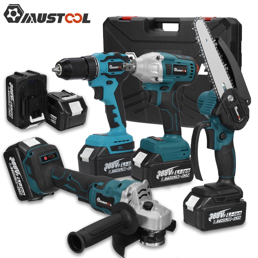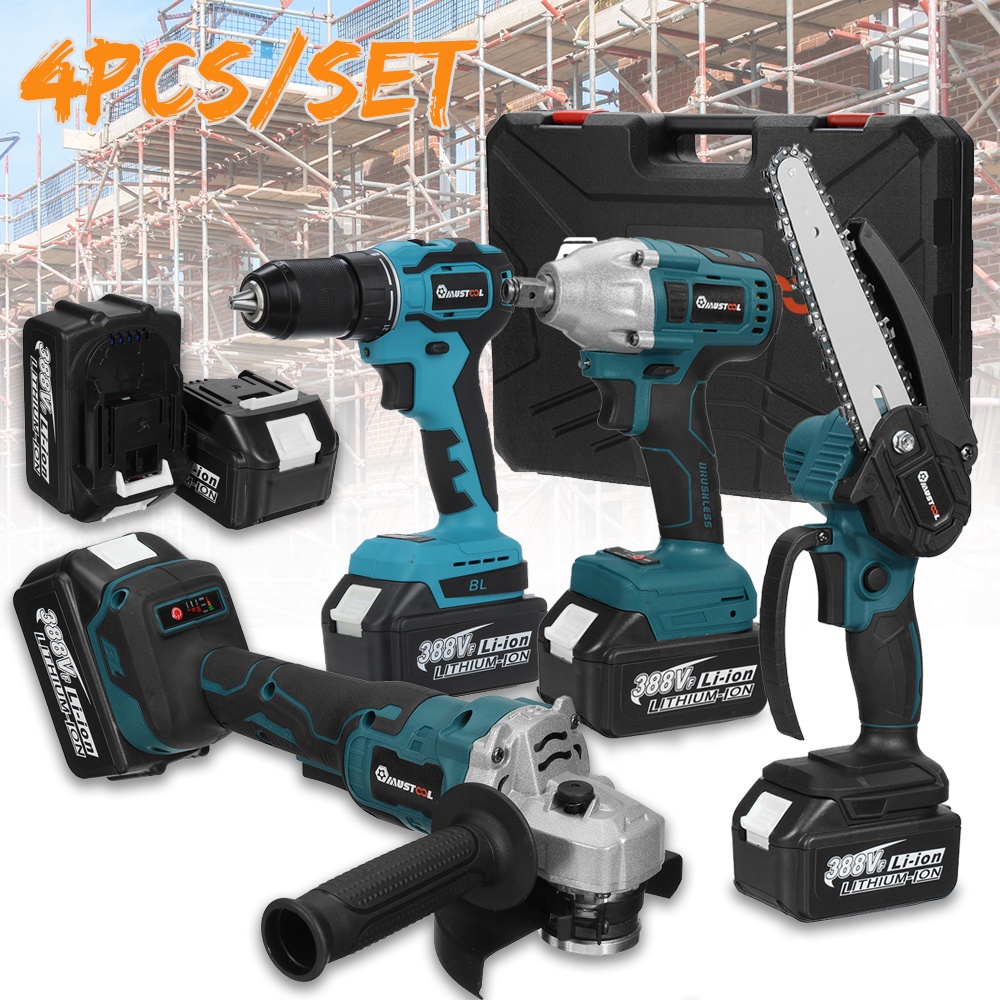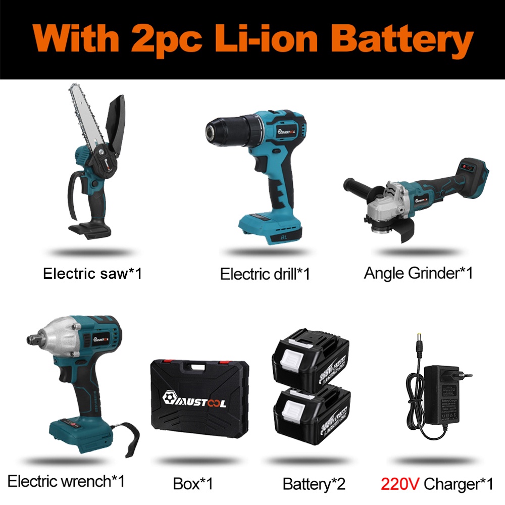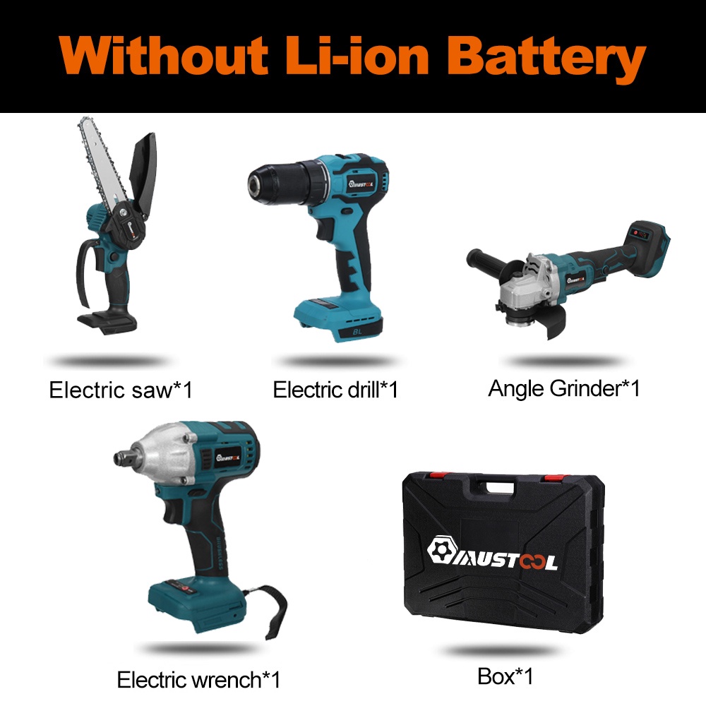 4In1 125mm Electric Tools Set Angle Grinder Cordless Chain Saw Electric Impact Wrench Electric Drill Screwdriver For 18V Battery