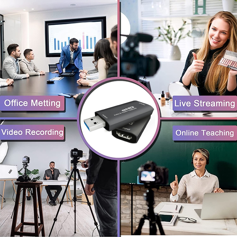 4K HDMI Video Capture Card, Game Capture Card Audio Capture Adapter HDMI to USB 3.0 Record Capture Device for Streaming, Live Broadcasting, Video Conference, Teaching, Gaming
