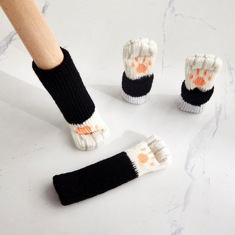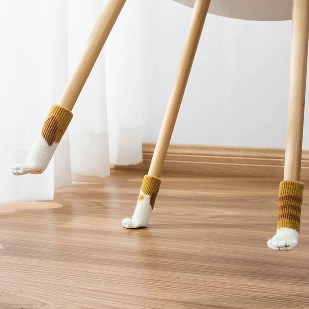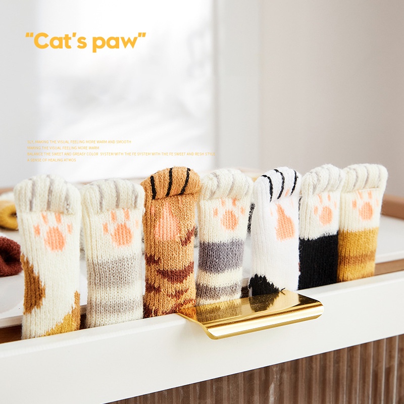 4Pcs Cute Cat Claw Table and Chair Foot Cover Protective Cover Cute Knitted Socks Mute Non-Slip