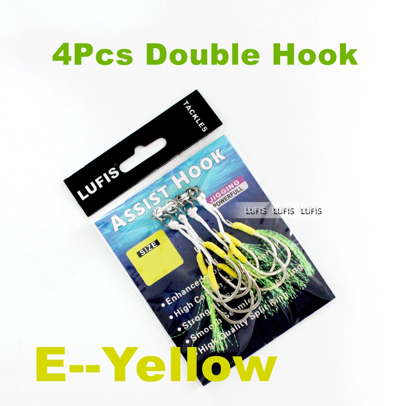 4Pcs/Pack10#-20# Jig Assist Double Hook Hand Made Fishing Hook