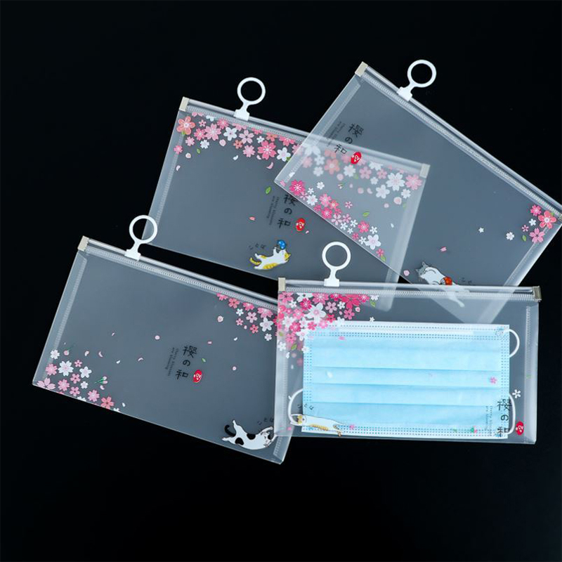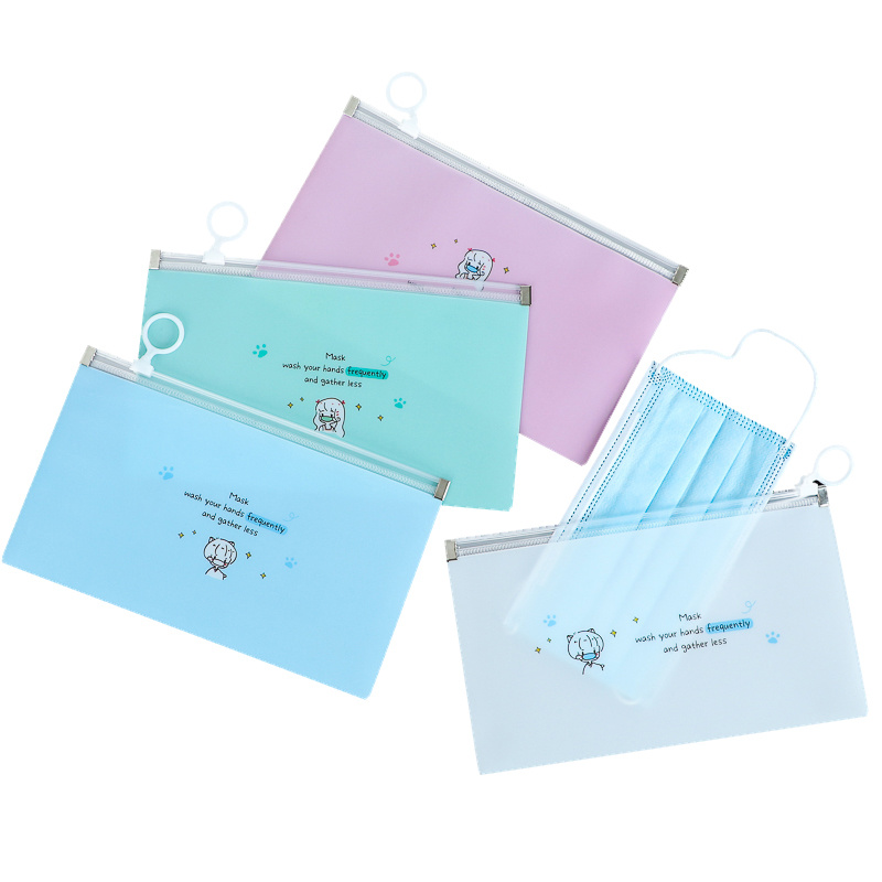 4Pcs/packet Portable Face Mask Storage Bag Pvc Dustproof Zipper Bag Face Mask Storage Case Disposable Mask Holder