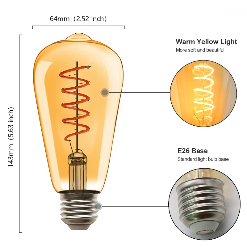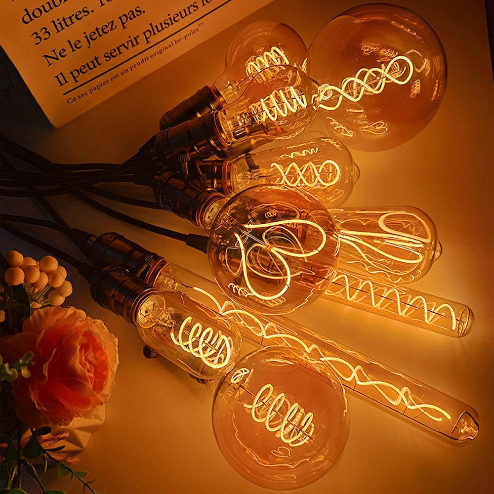 4W Dimmable LED Vintage Lamp E14 E27 Warm Yellow Retro LED Spiral Filament Light Bulb 220V C35 A60 T45 ST64 Vintage bulb