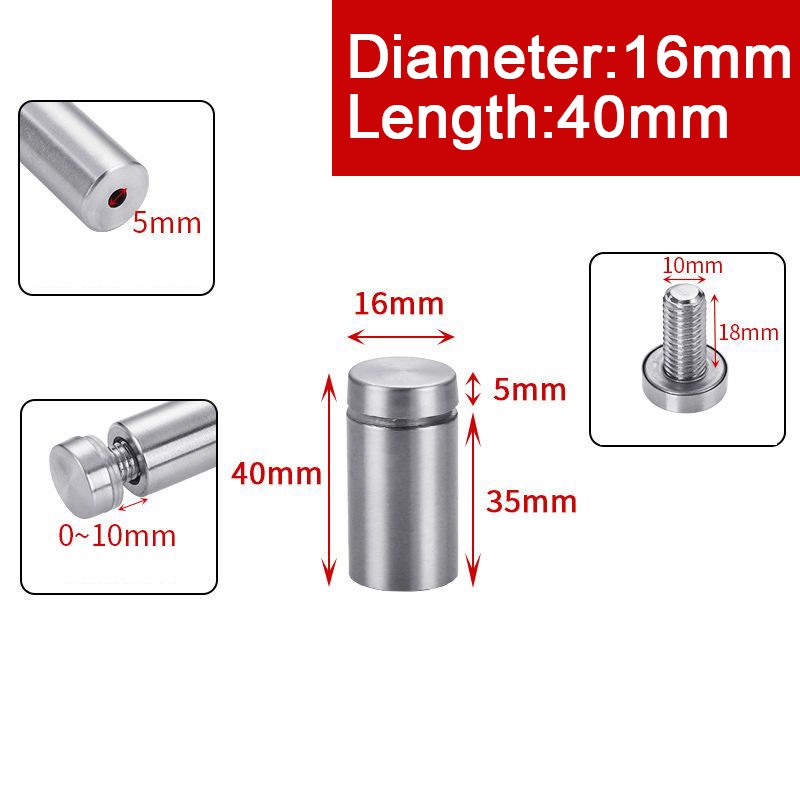 4pcs 12mm/16mm/19mm/25mm Glass Fasteners Sign Standoff Screws Advertising Screws Stainless Steel Wall Mounts Glass Acrylic Nail
