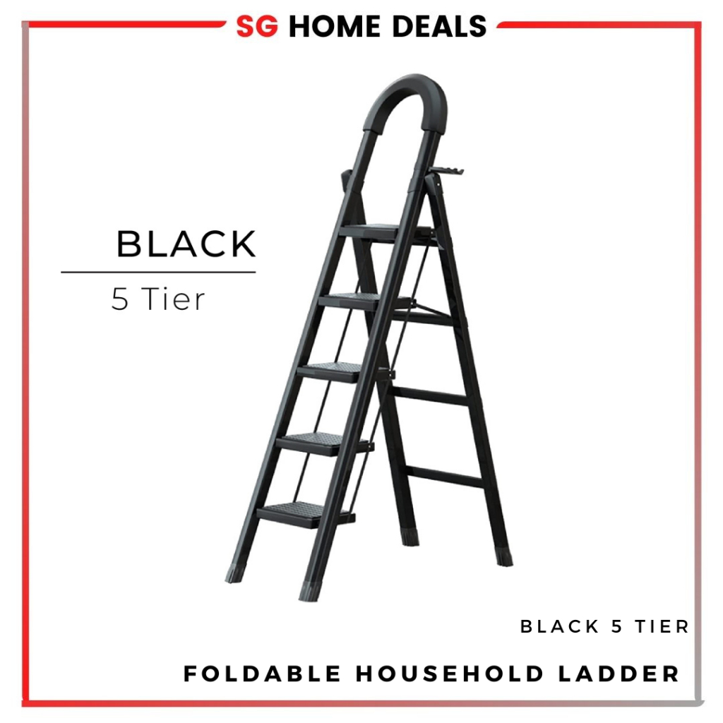 5/6 Tier Foldable Household Ladder Folding Ladder Herringbone Thickened Pedal Steel Pipe Ladder Antislip Space Saving