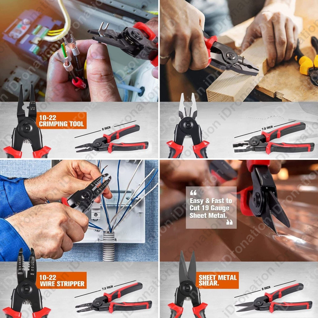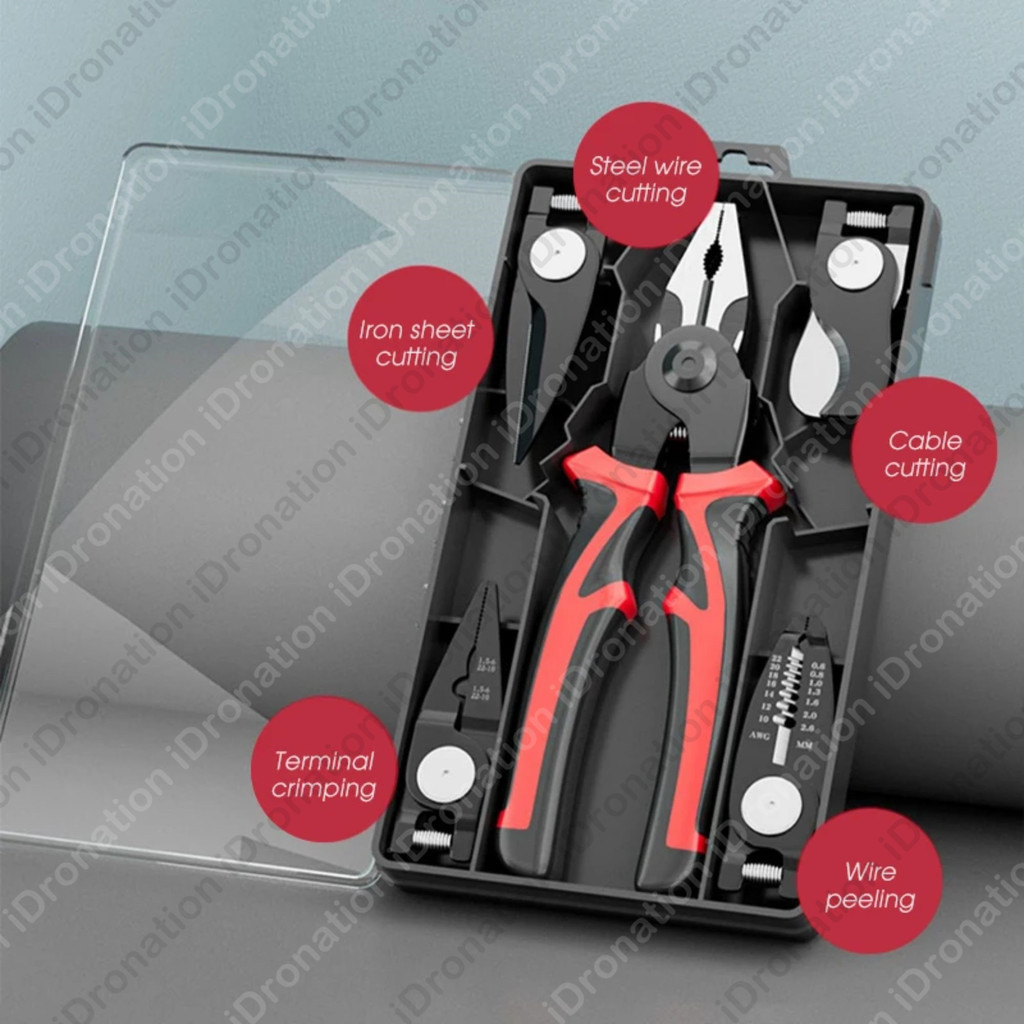 5 In 1 Replaceable Multifunctional Pliers Set Wire Stripper Cable Cutter Iron Sheet Cutting Electrical Crimping Tool Set