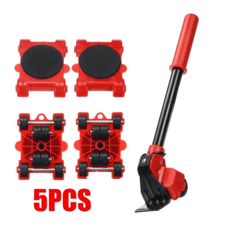 5 Pcs Furniture Moving Transport Roller Set Removal Lifting Moving Tool Set Wheel Bar Mover Moving Heavy Stuffs Device Hand Tool