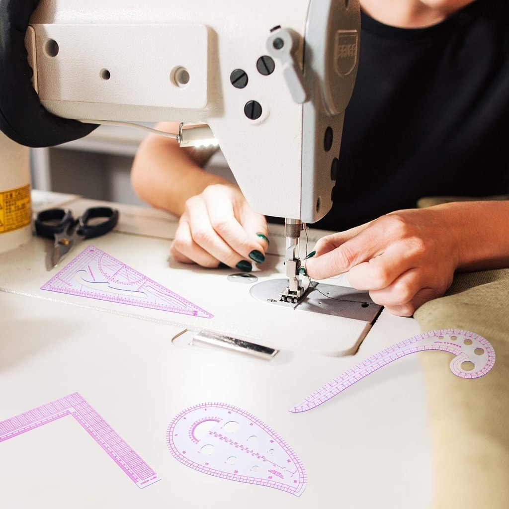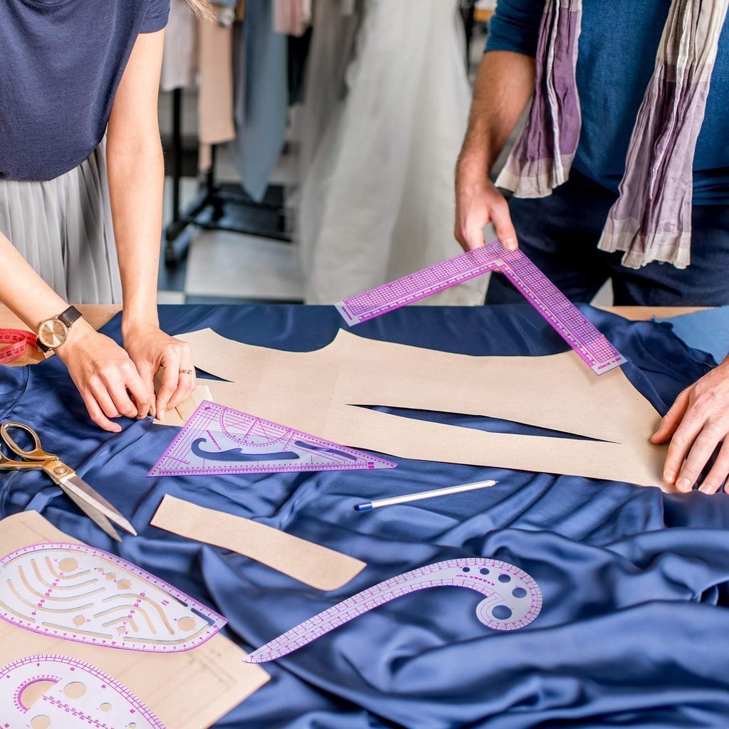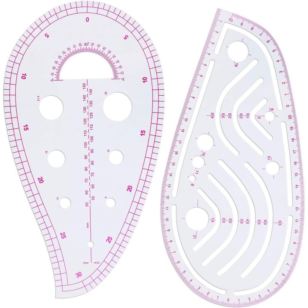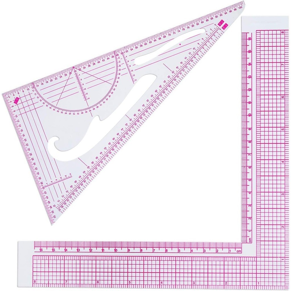 5 Pieces French Curve Metric Ruler Beveled Transparent Ruler Curve Metric Ruler Measure Sewing Tool Set Plastic L-Square Ruler, for Sewing DIY Clothing