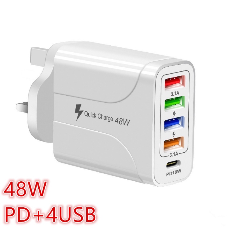5 Ports 48W Charger QC3.0 PD Fast Charging Power Adapter USB Charger