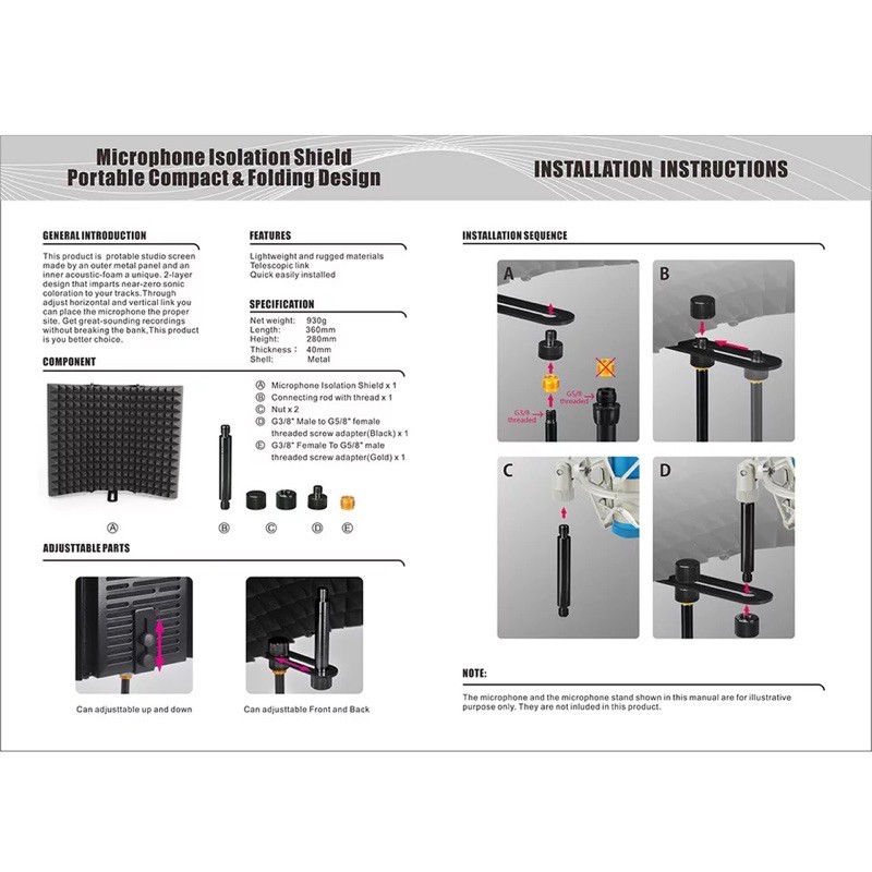 5 Sound Panel Foldable Studio Microphone Isolation Shield