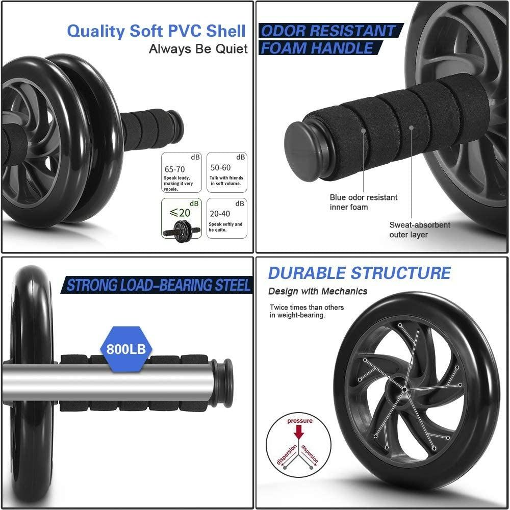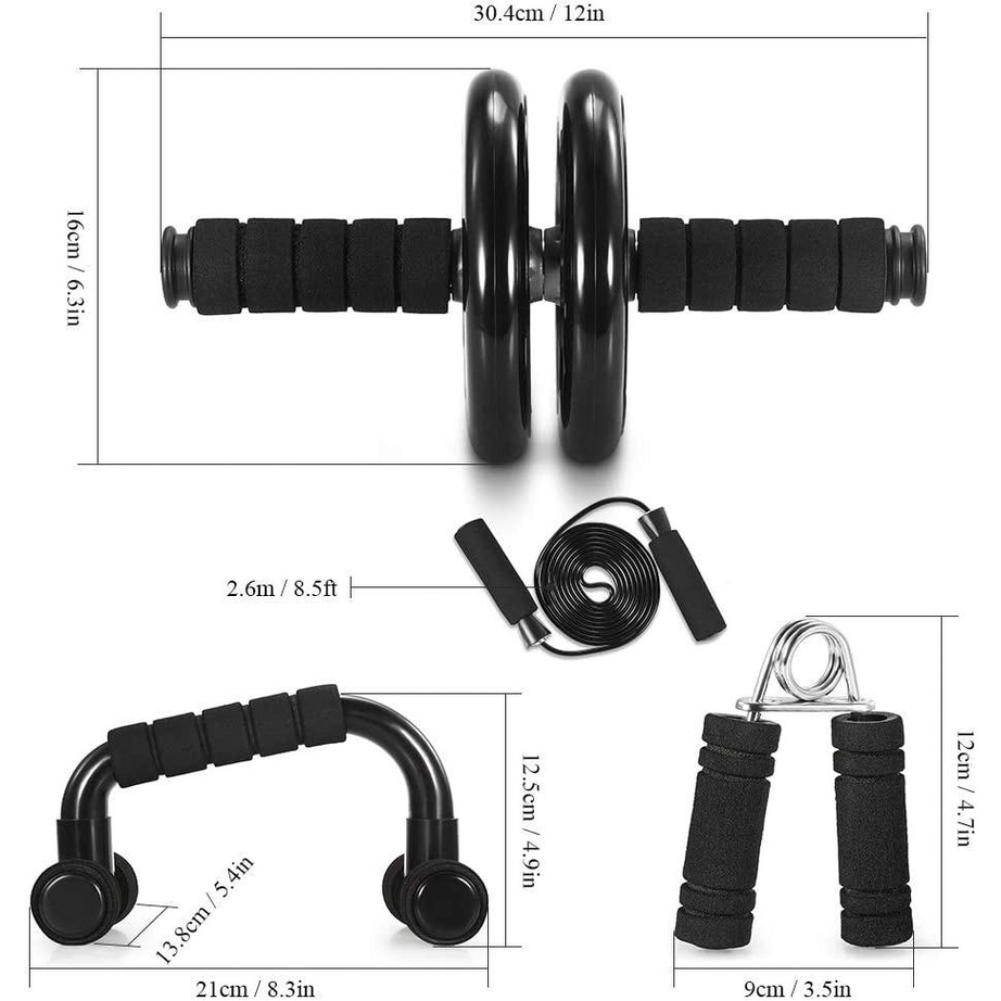 5-in-1 AB Wheel Roller Kit with Push-Up Bar Knee Mat Jump Rope Hand Gripper Home Gym Workout for Core Strength Abdominal