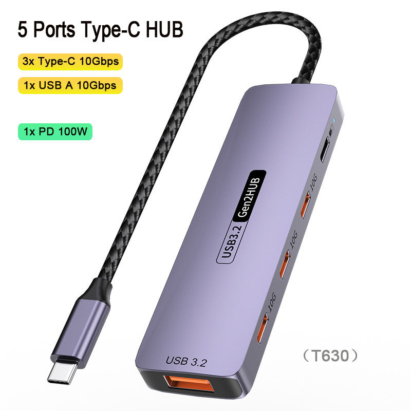 5 in 1 USB C Hub 10Gbps Data Tranfer PD 100W USB Type-C HDMI-compatible 4K USB 3.2 Gen HUB Adapter for Macbook IPad Laptop PC