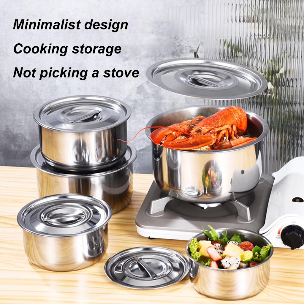 5 in1 Stainless Steel Cooking Stock Pot Set Kitchen Stainless Steel Food Container Cookware Set