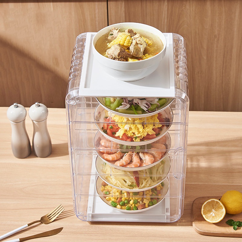 5-layer Food Cover Plastic Transparent Stackable Food Storage Container Safe Box Food Warmer Dust-proof Cover Foldable