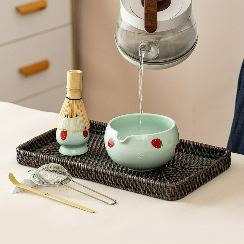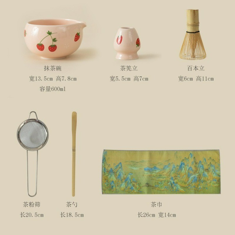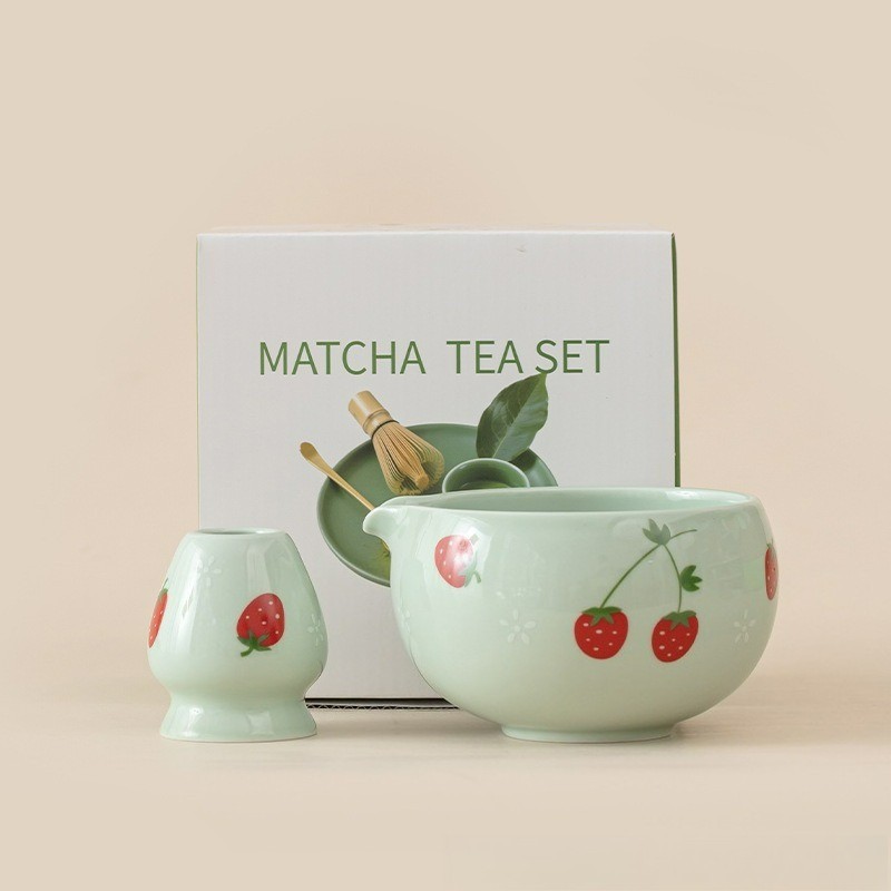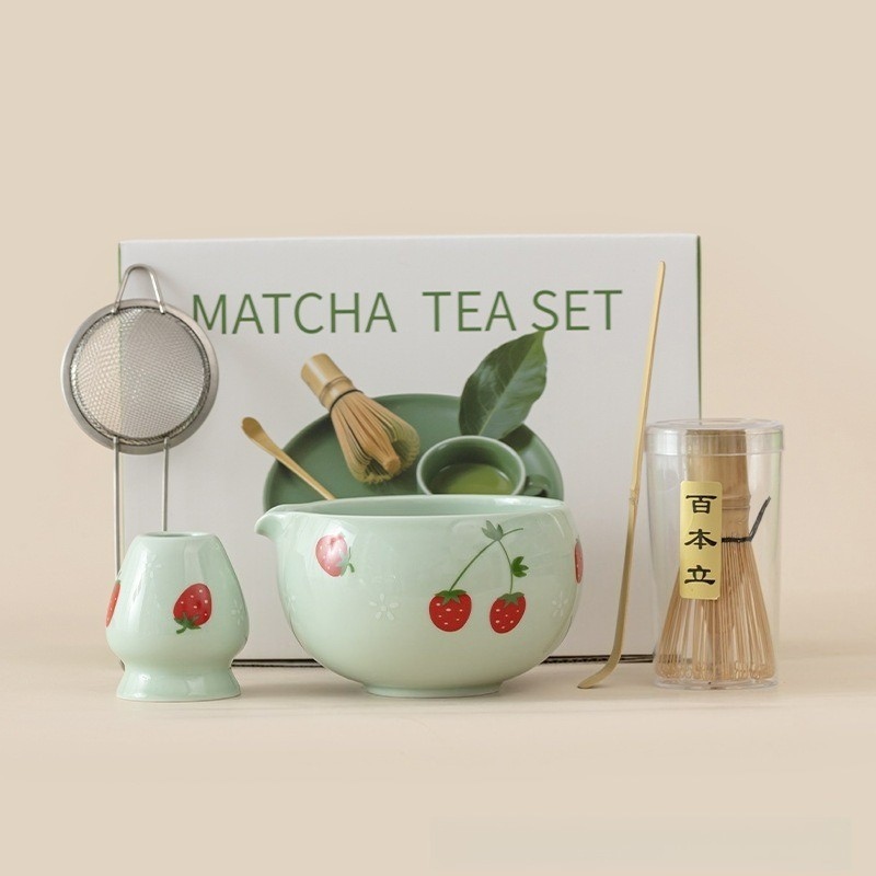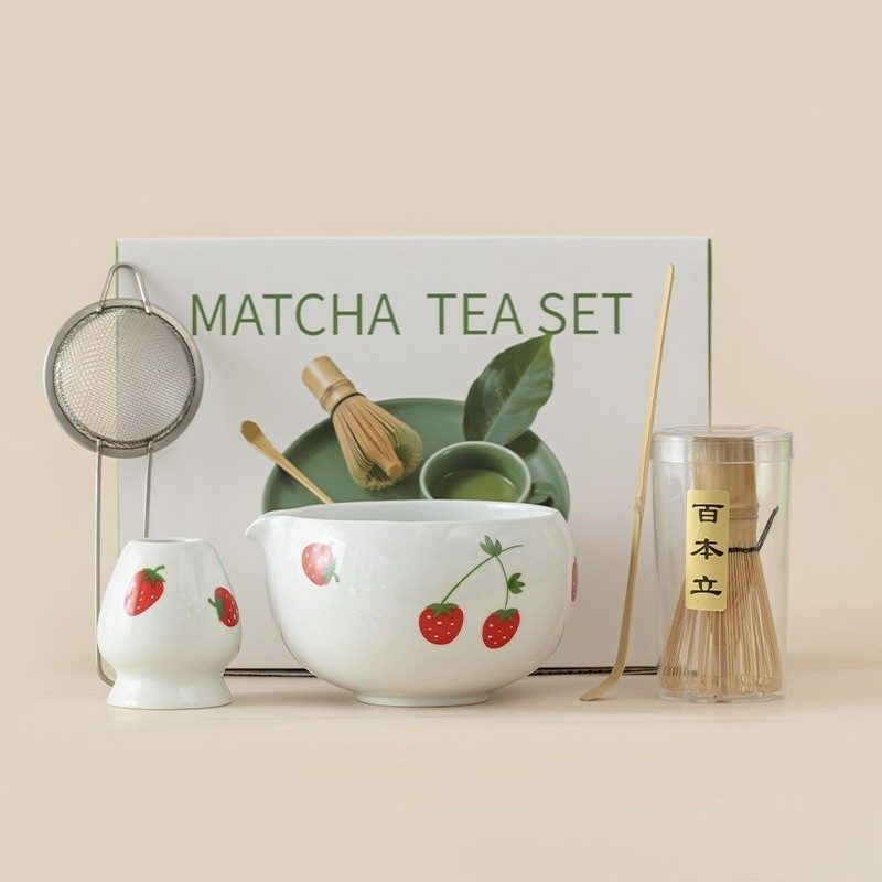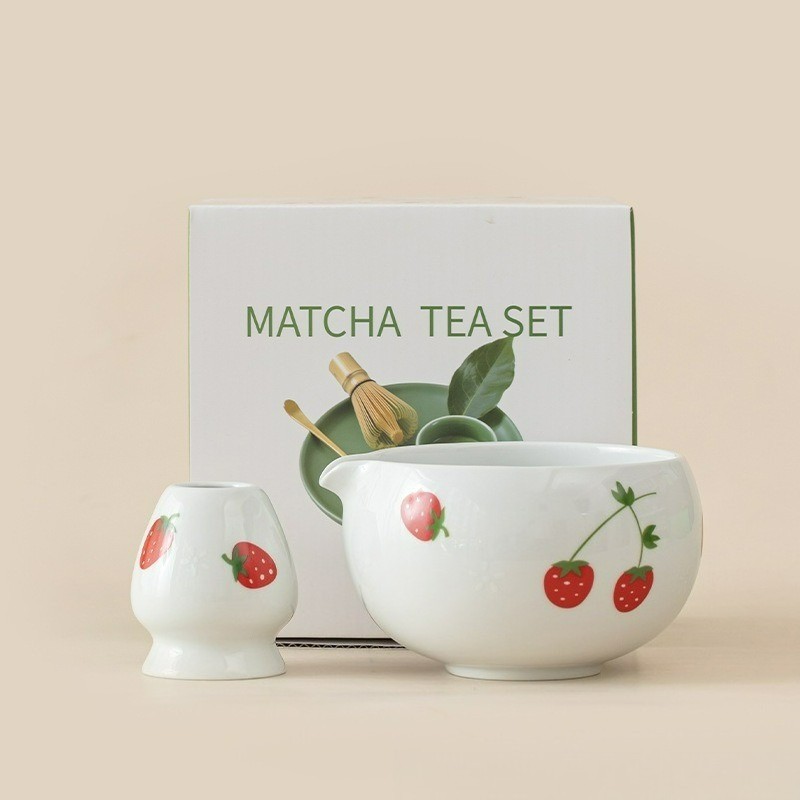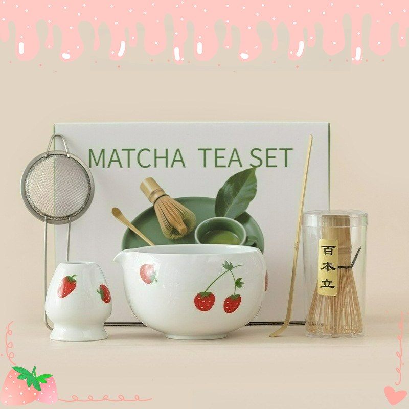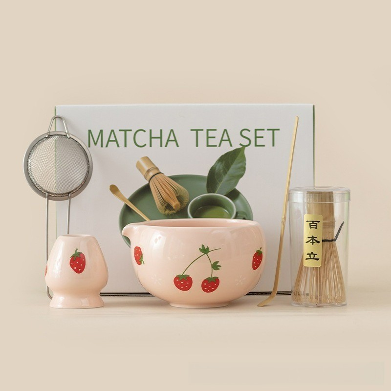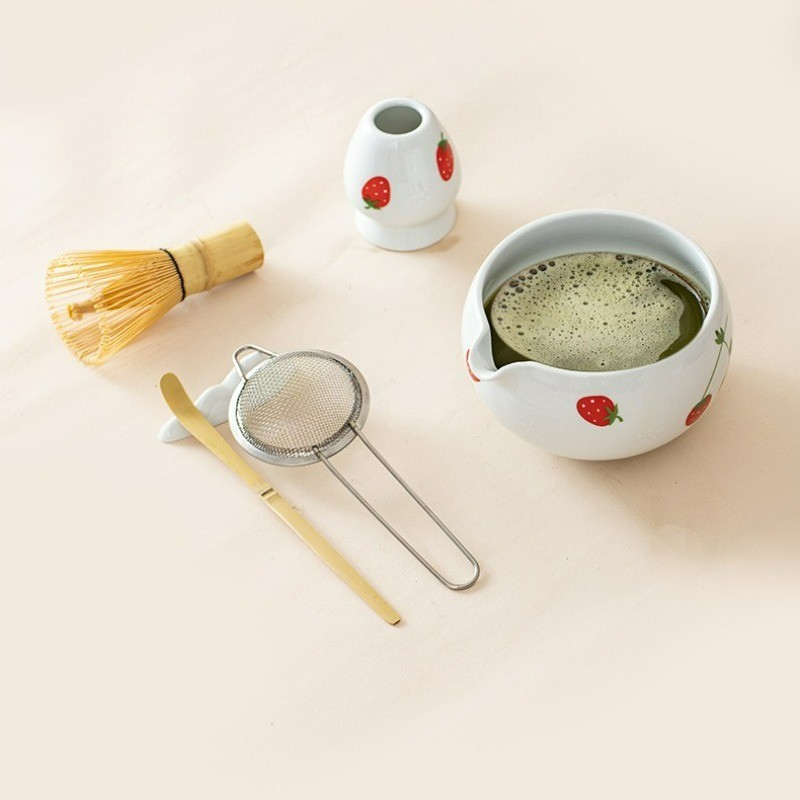 5-piece Strawberry Matcha Set Cute Matcha Set Matcha Bowl Set Matcha Bowl with Spout Bamboo Matcha Whisk