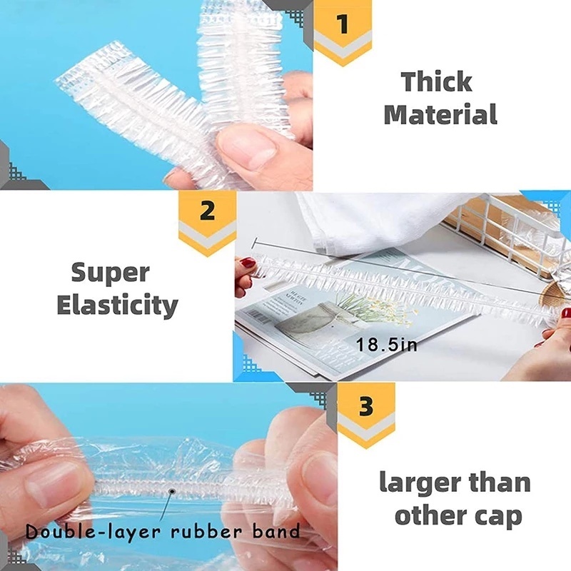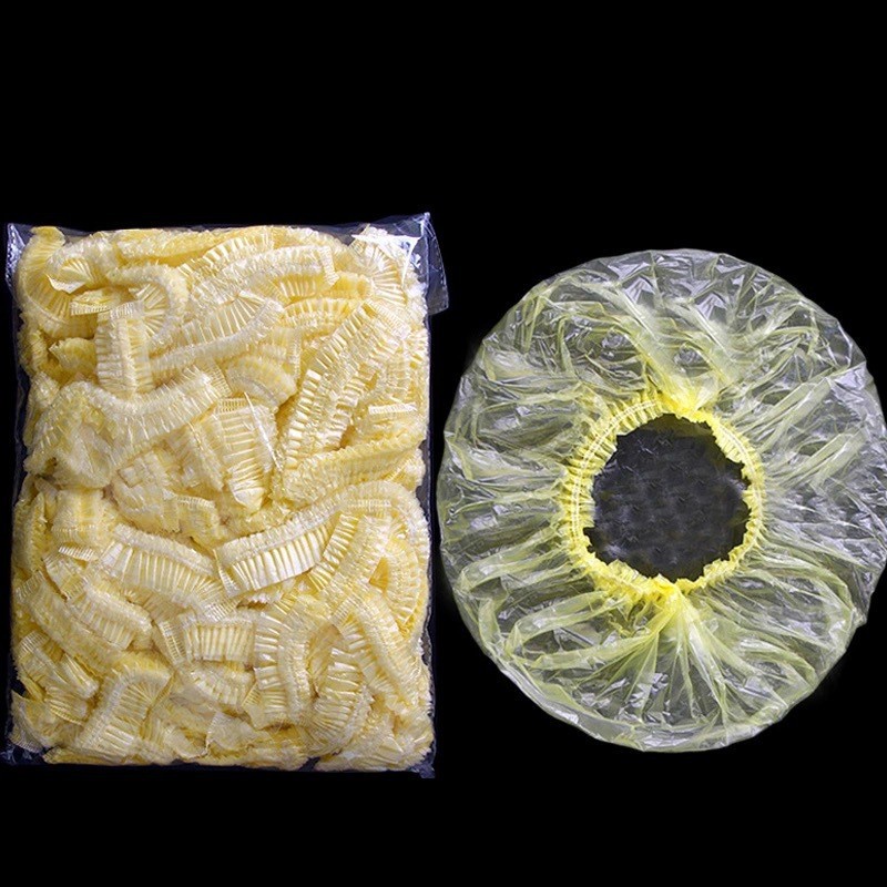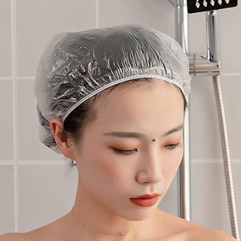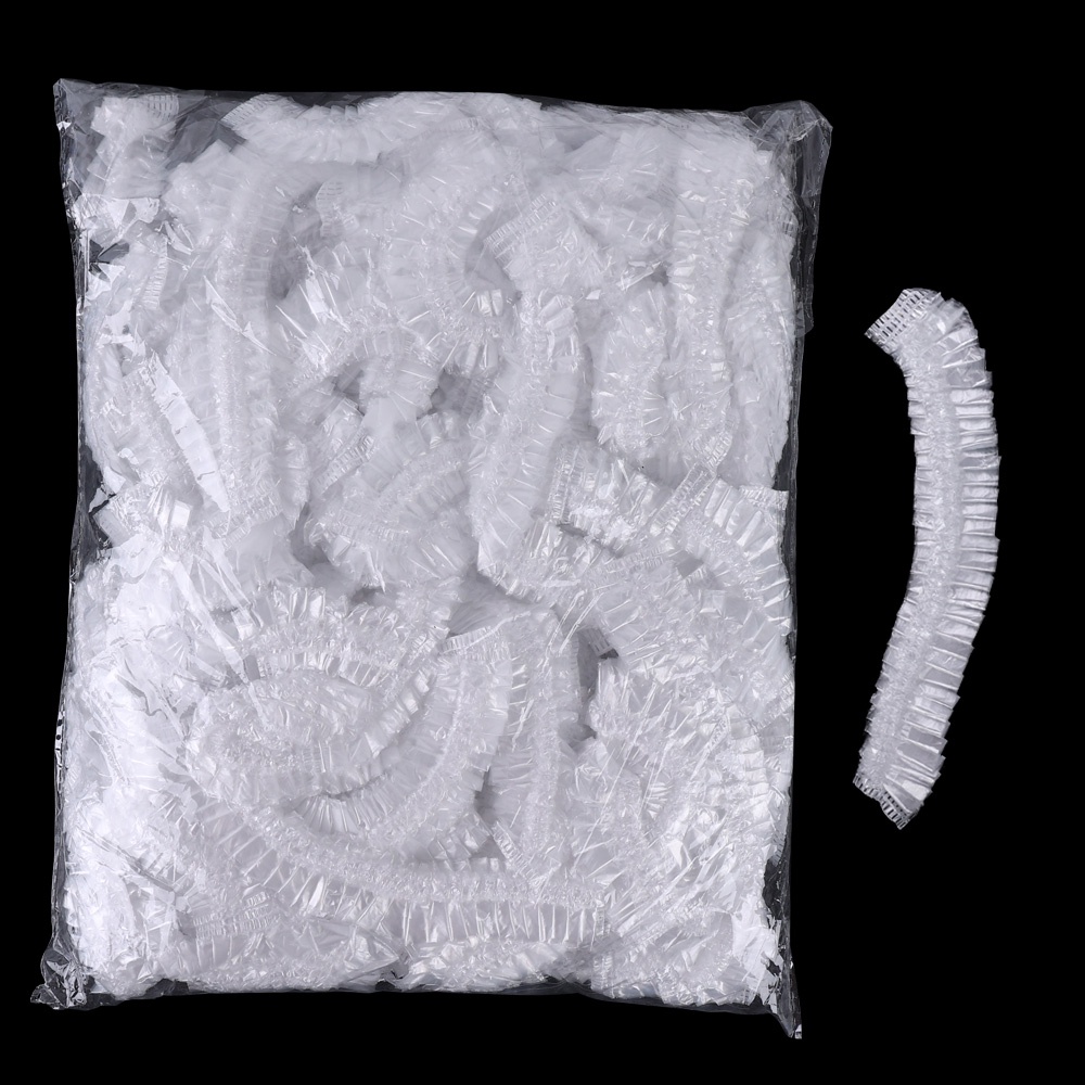 50/100 Pcs Waterproof PE Disposable Salon Cap/ Transparent Bath Hat for Barbershop Hotel Beauty/ Thickened Elastic Shower Cap