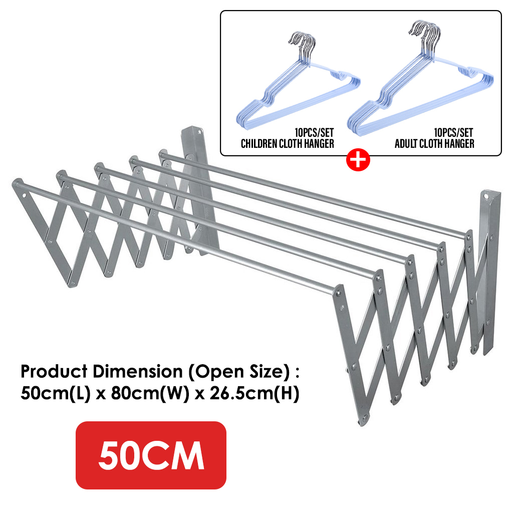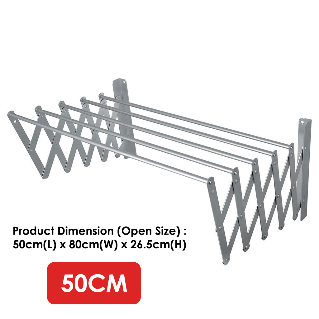 50 / 60CM X 5 Bar Extendable Clothes Hanger Wall Assembly Wall Mounted Aluminium Alloy Retractable Cloth Hanger