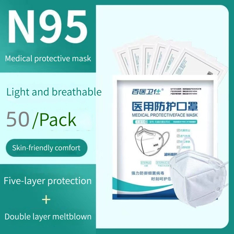 50 N95 medical protective masks, breathable and skin friendly, five layer disposable antibacterial adult masks