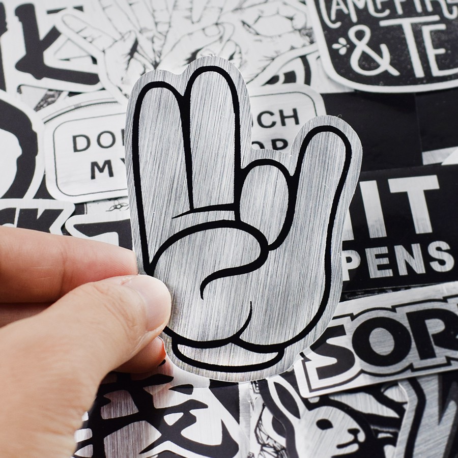 50 PCS Metallic Style Black and White Sticker Graffiti Cool Stickers for DIY Skateboard Laptop Waterproof car sticker