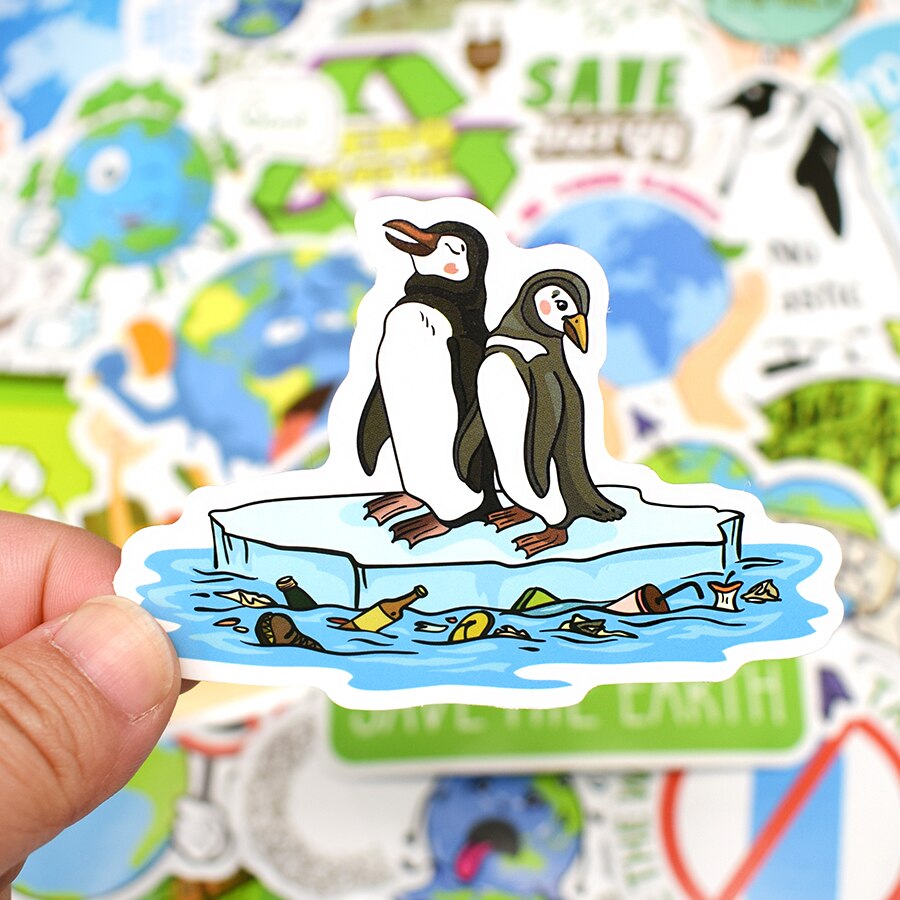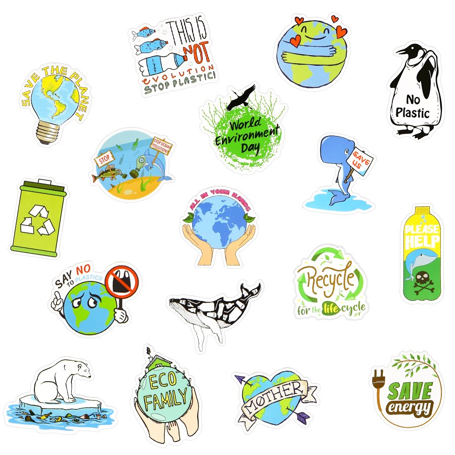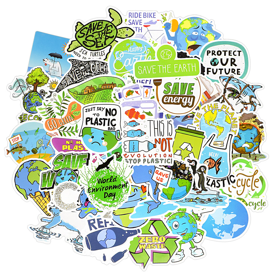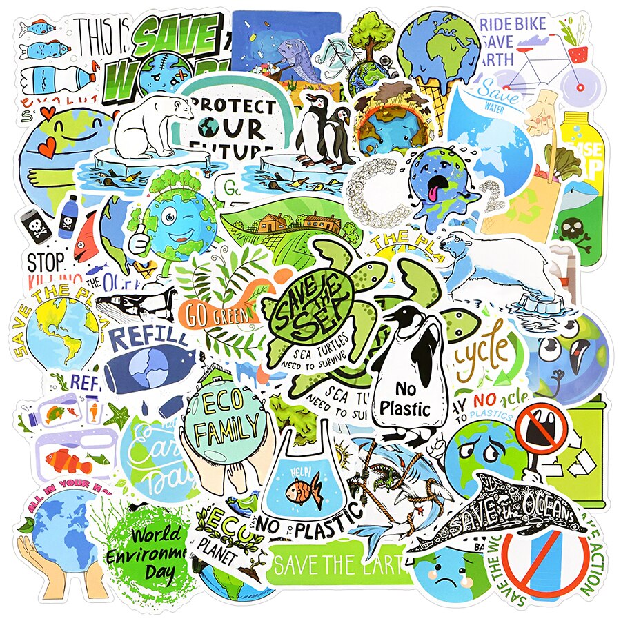 50 PCS Save Earth Stickers Funny Cartoon Vinyl Decal Education Environment Sticker for Kid Gift DIY Laptop Fridge Car Bike Diary