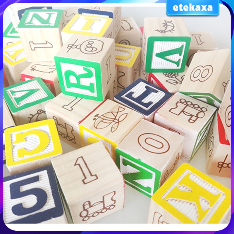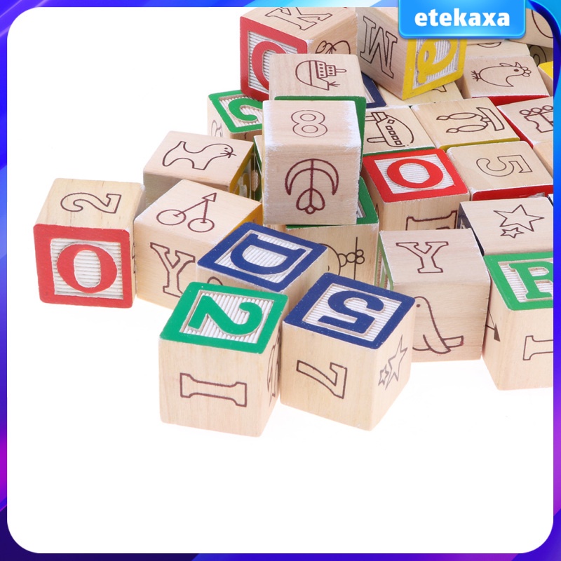 50 Pcs Wooden ABC Alphabet Numbers Cube Blocks Stacking Kids/Children Early Learning Toy Educational function learn know English letters color pictures cognition animal
