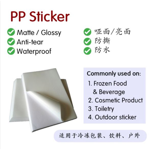 50 pcs A4 Size WATERPROOF Sticker Paper PP Synthetic Label for inkjet and laser printer